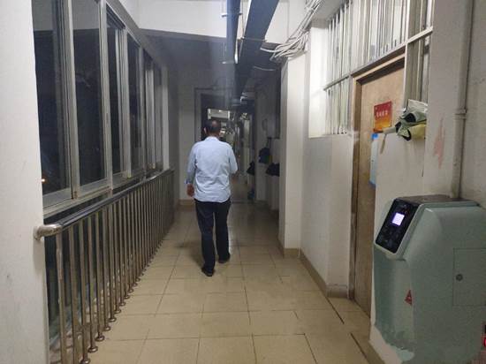 工作人员排查楼栋的消防器材情况
