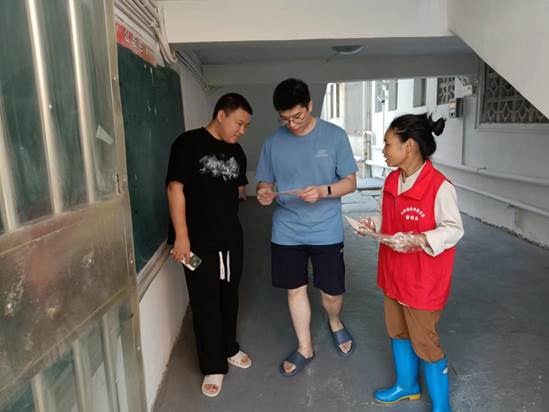 工作人员排查楼栋门窗等设施