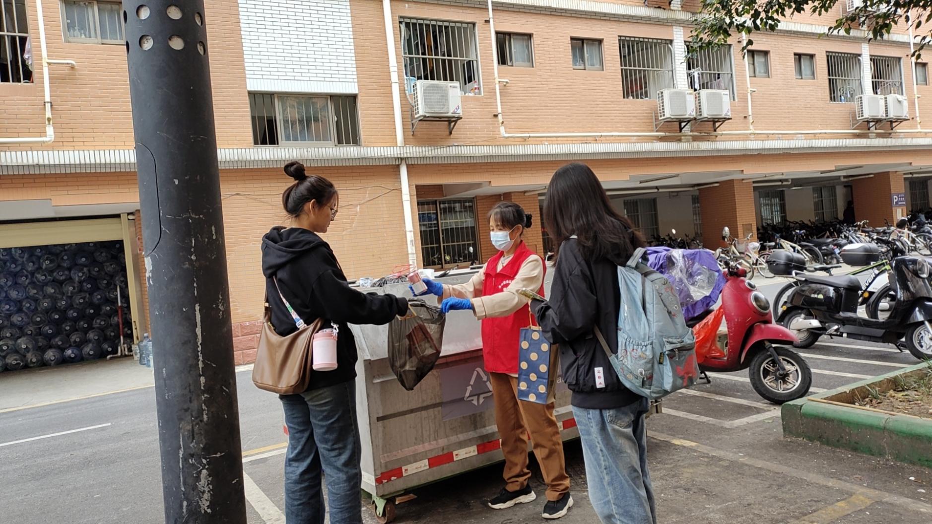 本周垃圾分类督导员共处理垃圾约45.111吨,其中厨余垃圾约19吨、其他垃圾约23吨、可回收垃圾约3.11吨、有害垃圾约 0.001吨;垃圾分类督导员走访学生宿舍并发放垃圾分类宣传单443多张,向537多位同学宣传垃圾分类知识。