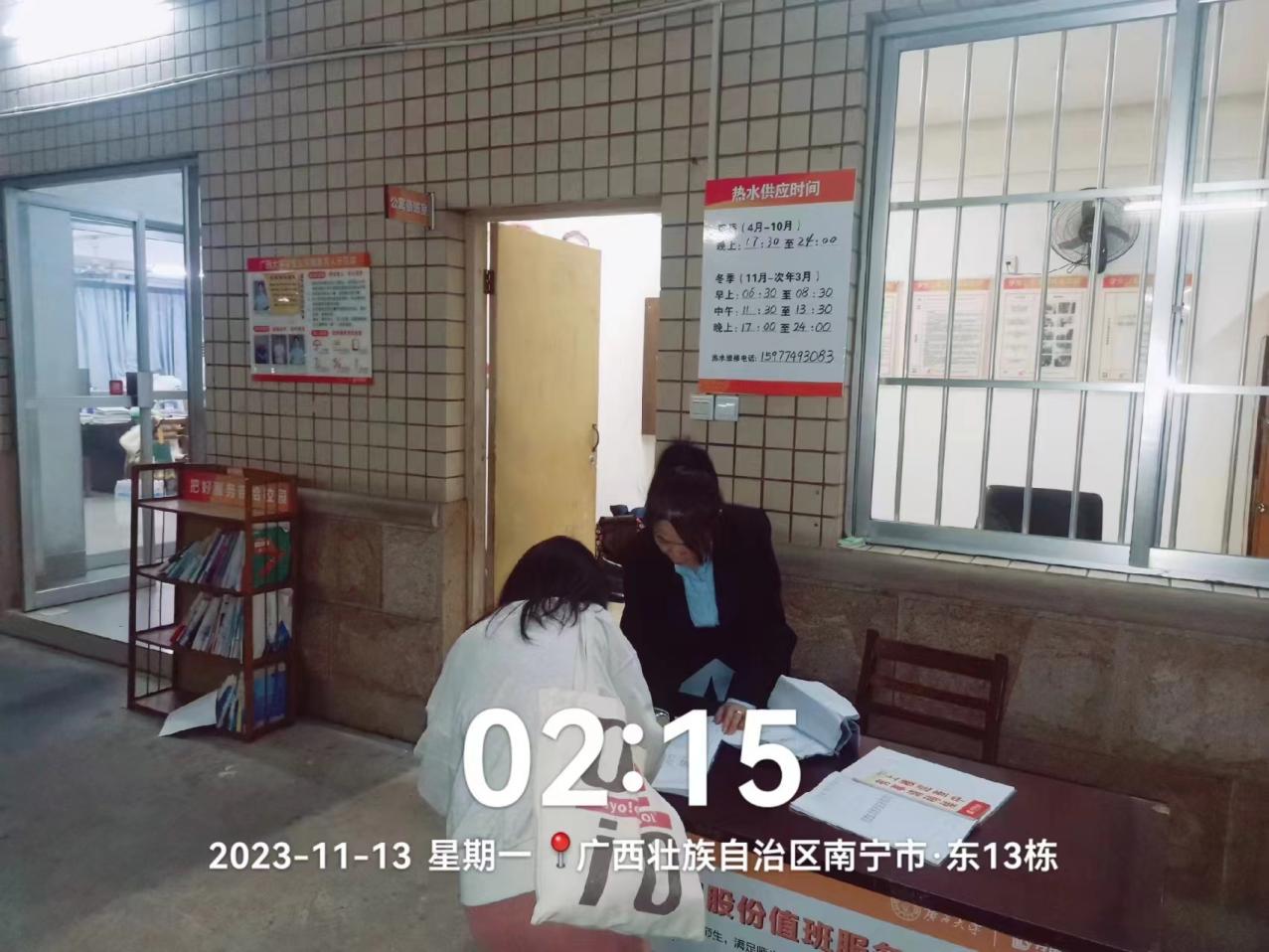 第十一周学生公寓各项服务工作有序开展,本周到宿舍走访学生208人次,办理宿舍业务4646人次(其中办理外宿11人,调宿学生8人,新入住学生10人,其他业务159人, 晚归登记4458人次)。