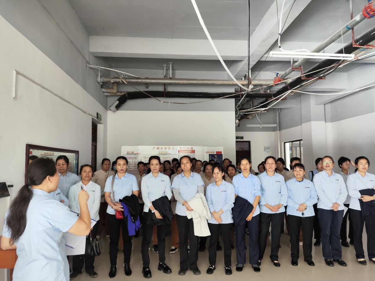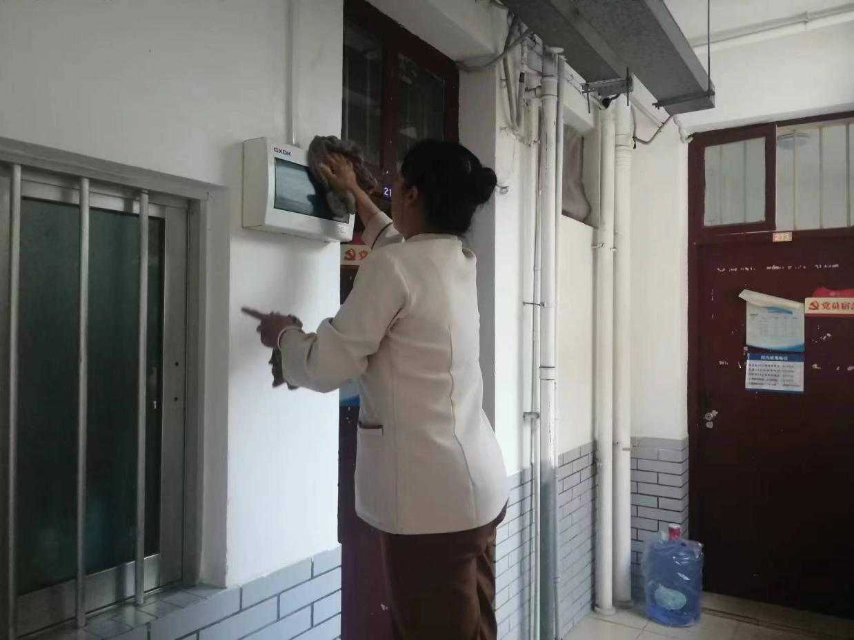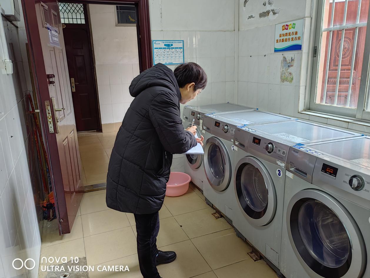 认真做好园区内各种设备设施和33间自习室的保洁维护工作。每日检测园区热水机组温度以及洗衣机的运营情况,定时检查园区消防设备设施情况。擦拭学生公寓园区内472个生活设施(其中公共长椅102张,乒乓球桌152张,晾衣架134个、健身器材84个)。
