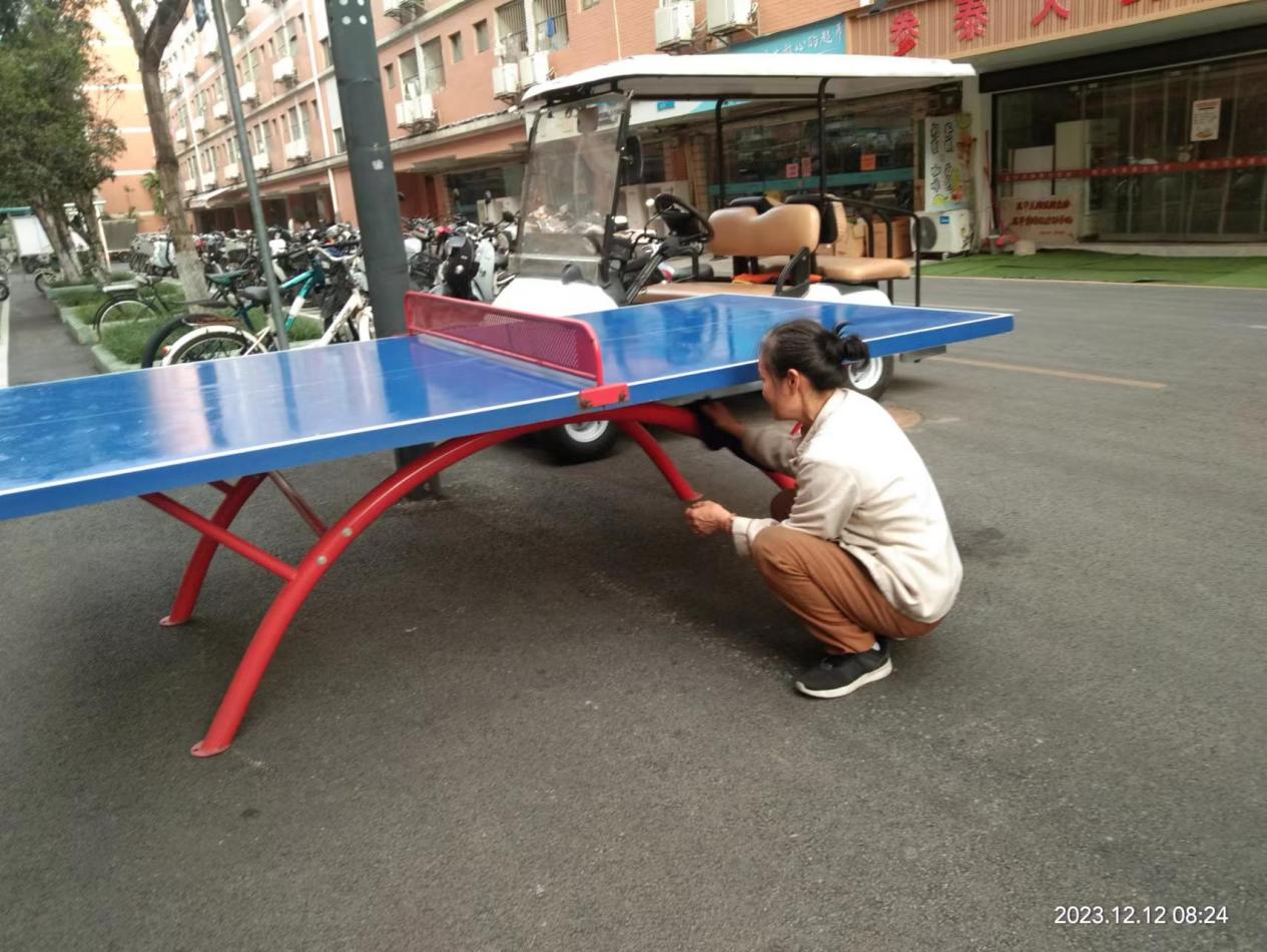 保洁人员擦拭园区乒乓球桌