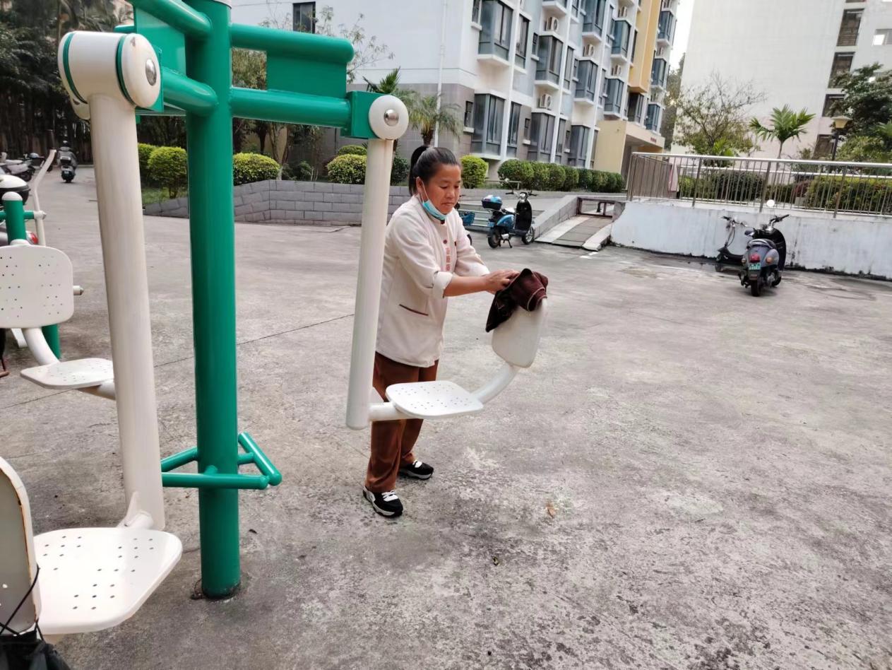 保洁人员开展体育健身设施保洁工作