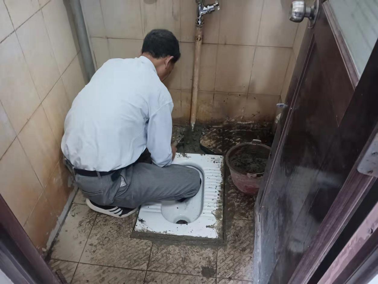 工作人员维修室内卫生间