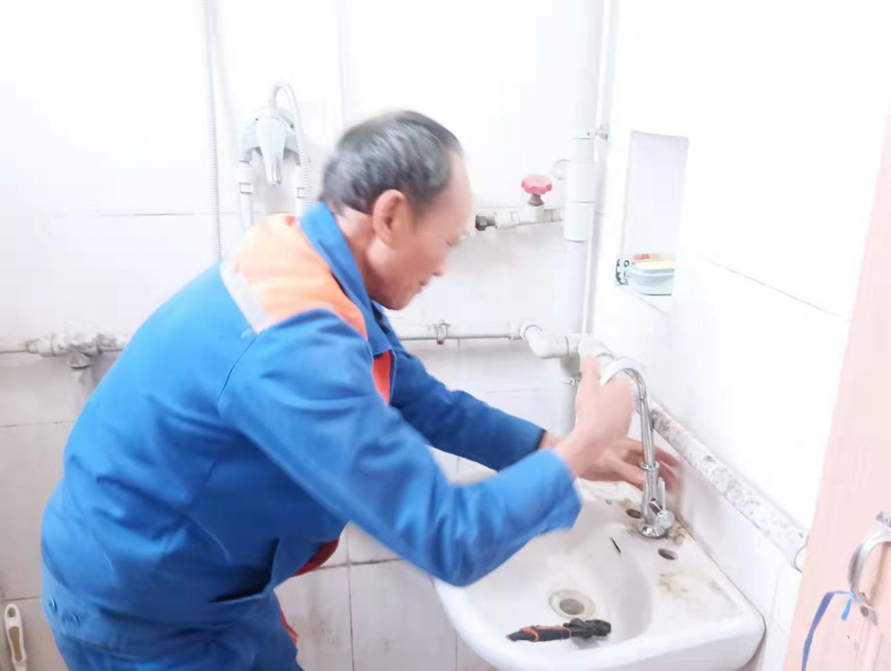 工作人员维修室内水龙头