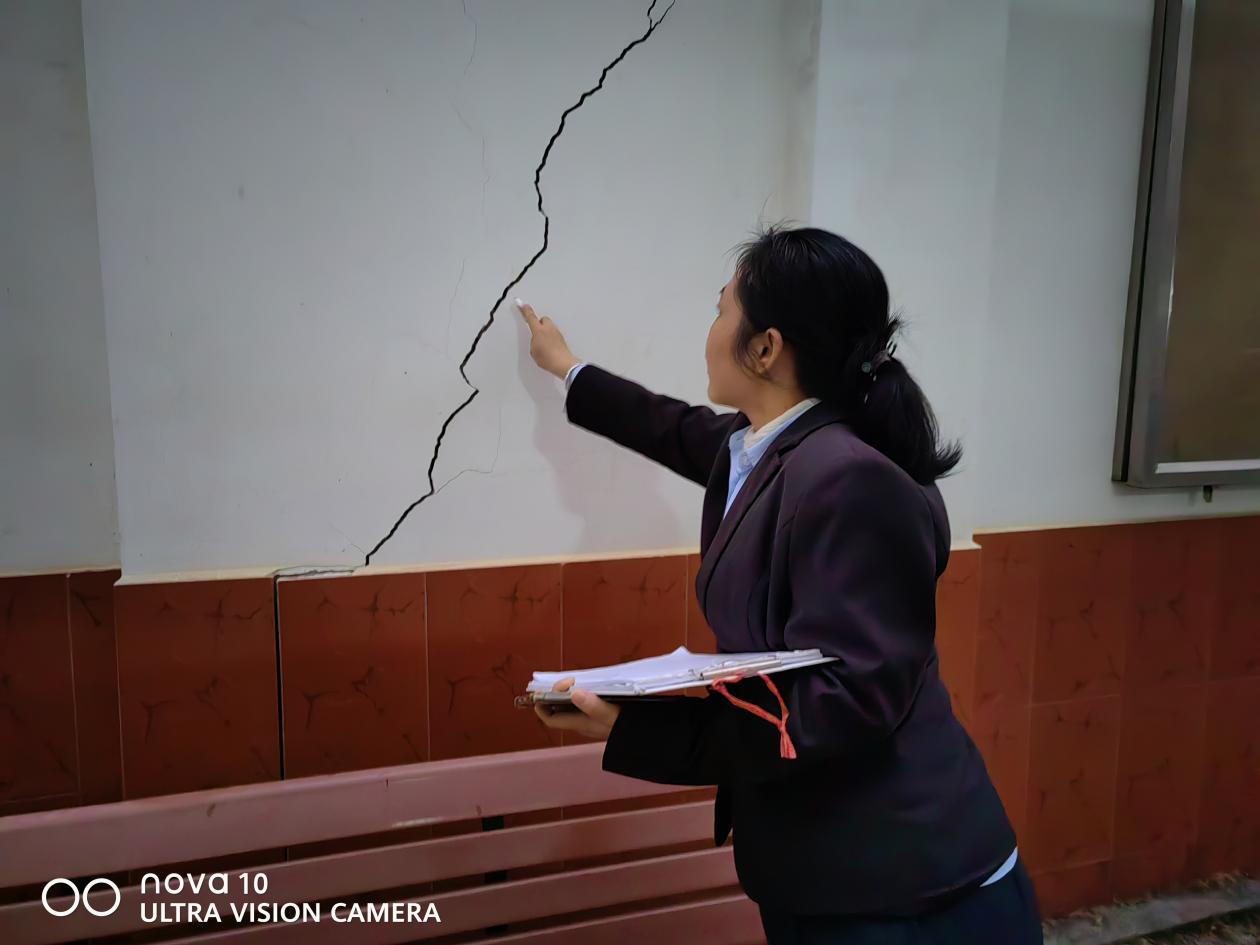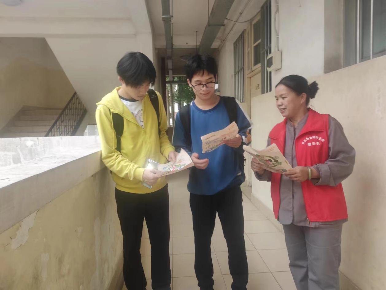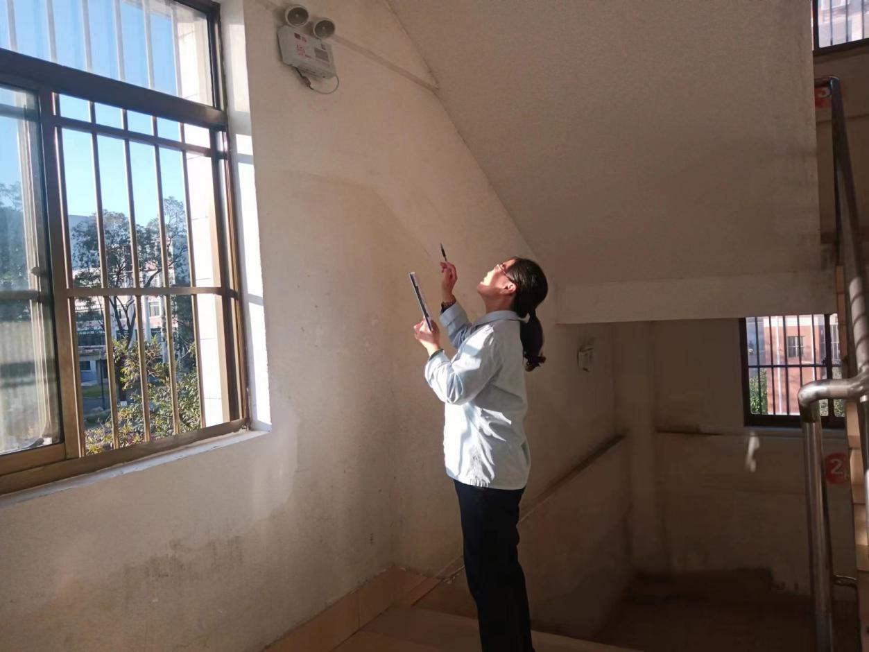 工作人员进行学生公寓安全隐患排查工作