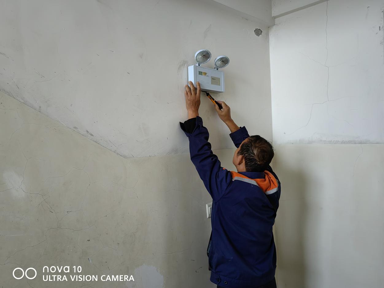 工作人员维修专家B栋公共区域应急灯