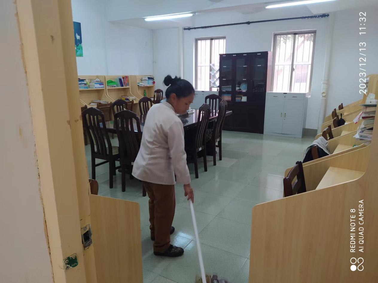 保洁人员对学生公寓自习室进行保洁