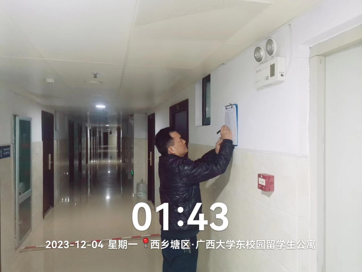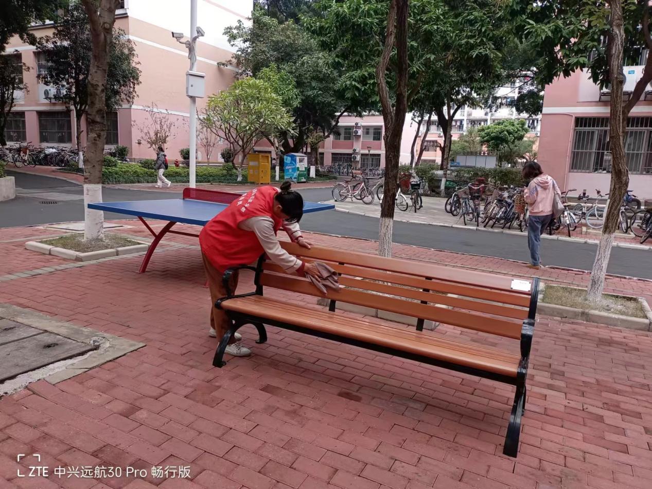 认真做好园区内各种设备设施和33间自习室的保洁维护工作。每日检测园区热水机组温度以及洗衣机的运营情况,定时检查园区消防设备设施情况。擦拭学生公寓园区内472个生活设施(其中公共长椅102张,乒乓球桌152张,晾衣架134个、健身器材84个)。
