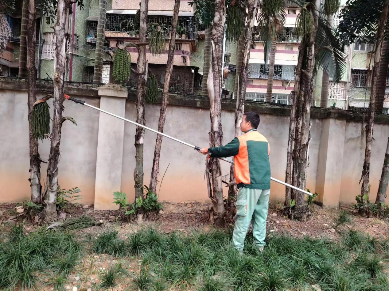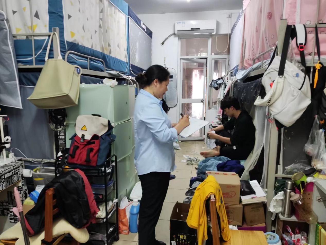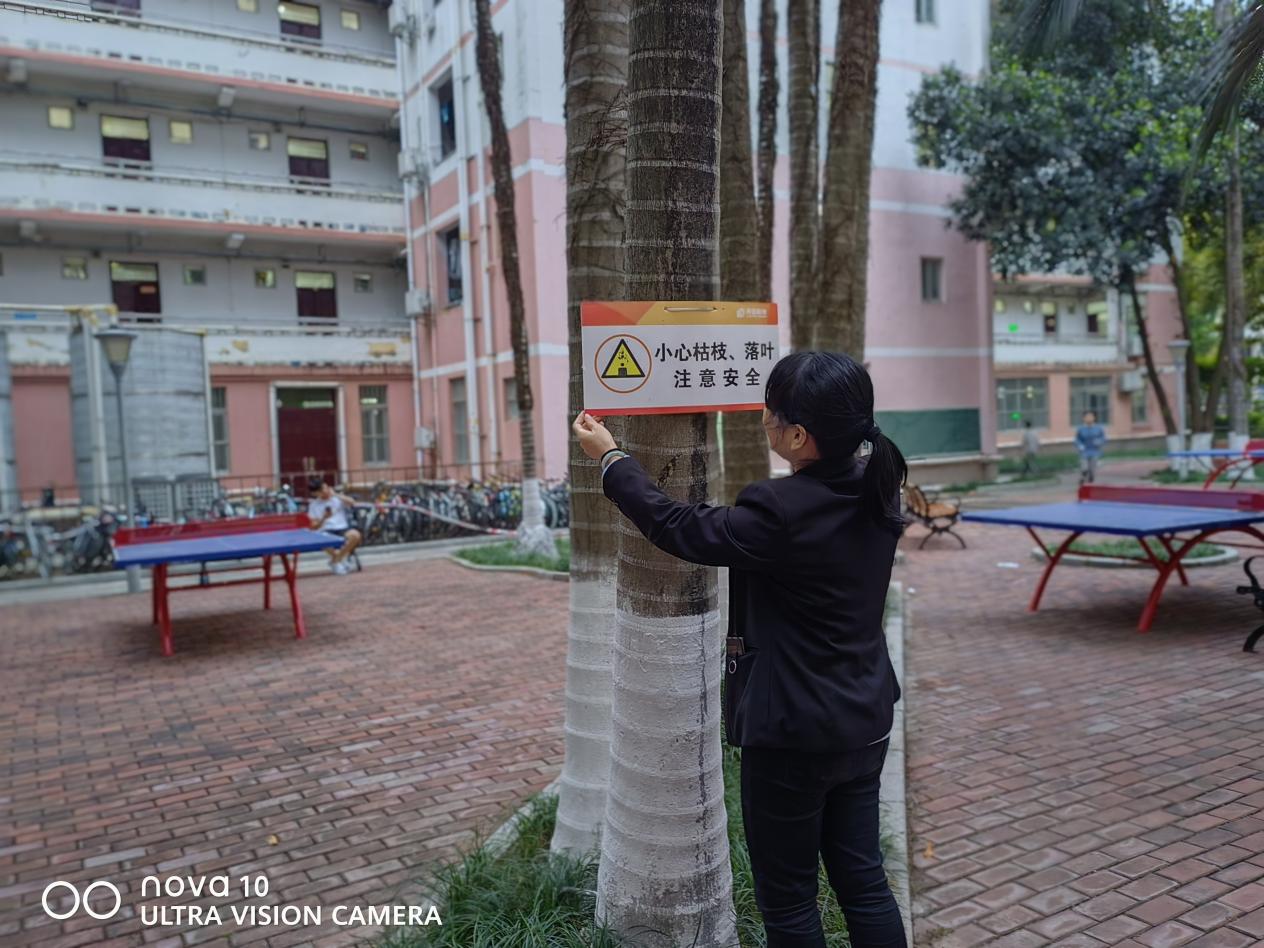 工作人员进行学生公寓高大树木安全隐患排查工作