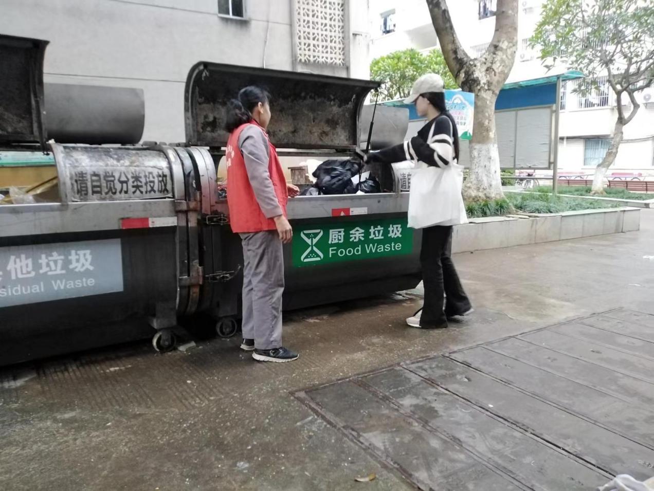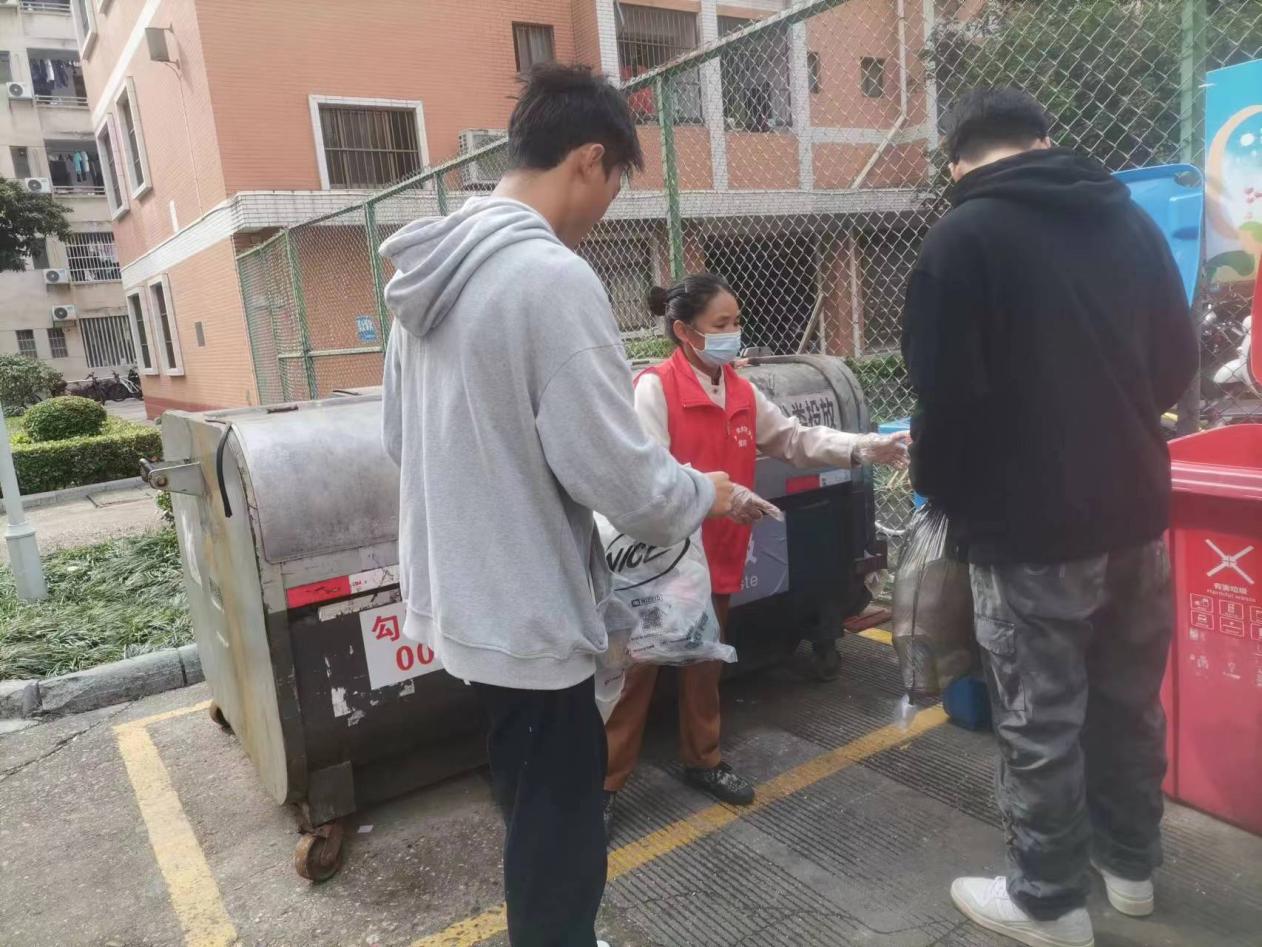 本周垃圾分类督导员共处理垃圾约29.951吨,其中厨余垃圾约13吨、其他垃圾约16吨、可回收垃圾约0.95吨、有害垃圾约 0.001吨;垃圾分类督导员走访学生宿舍并发放垃圾分类宣传单385多张,向416多位同学宣传垃圾分类知识。