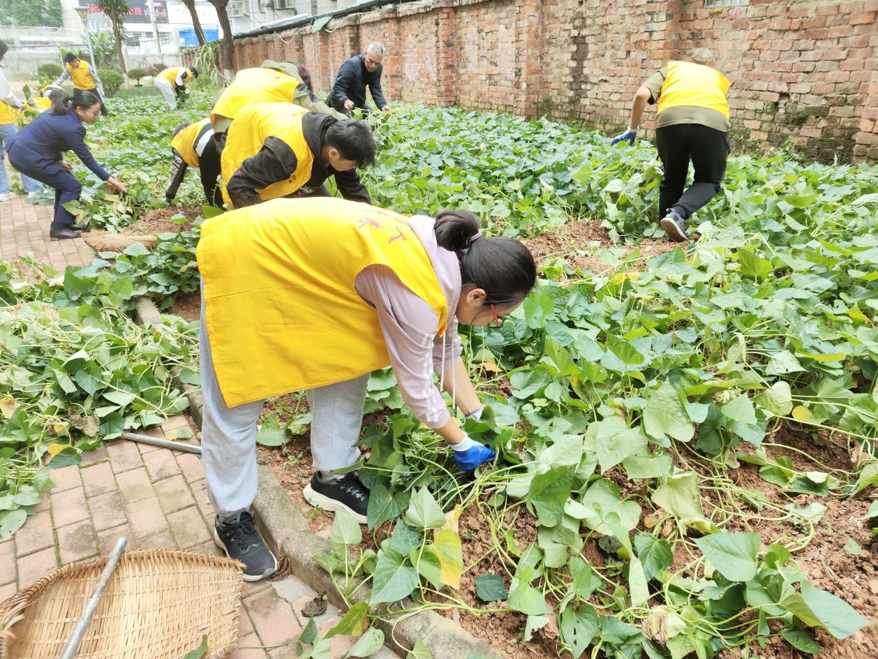12月5日,后勤基建处开展学生公寓红薯采摘活动,参与活动的老师与学生亲手采摘红薯以及品尝红薯美食,分享丰收的喜悦和劳动的成果。