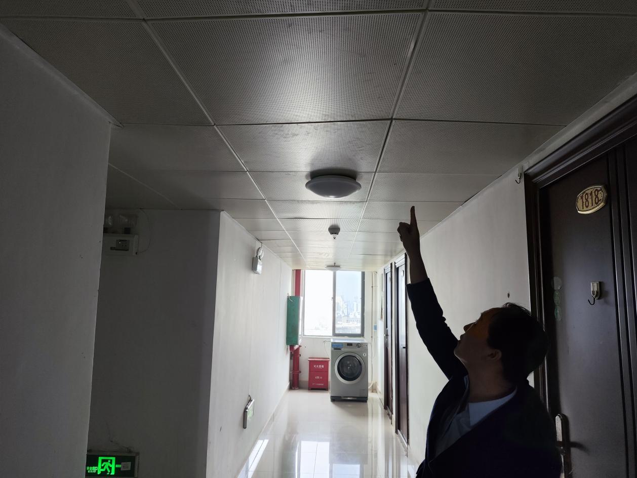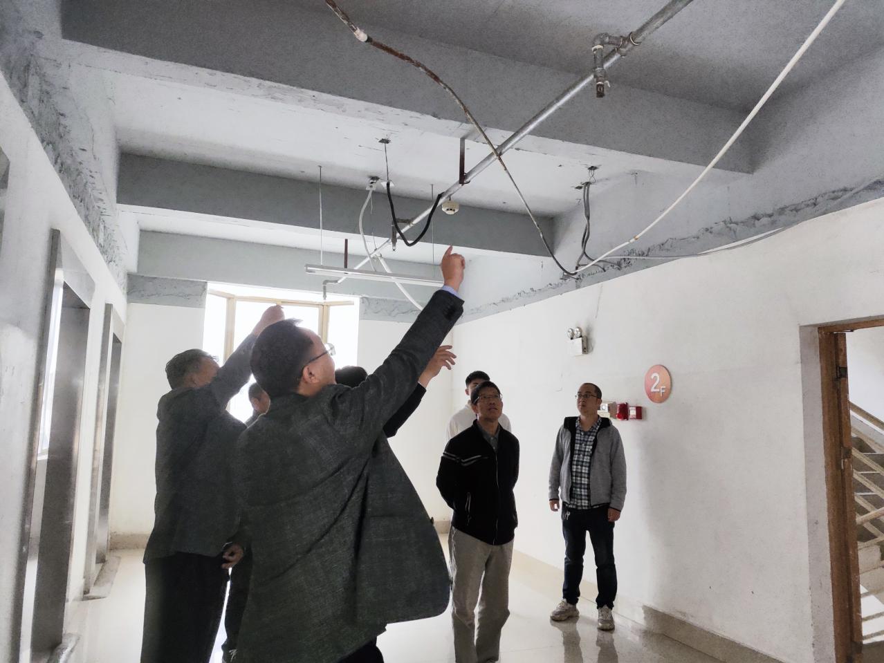 校领导带队调研学生公寓东27栋走廊吊顶情况