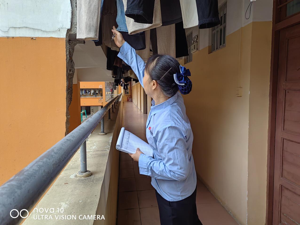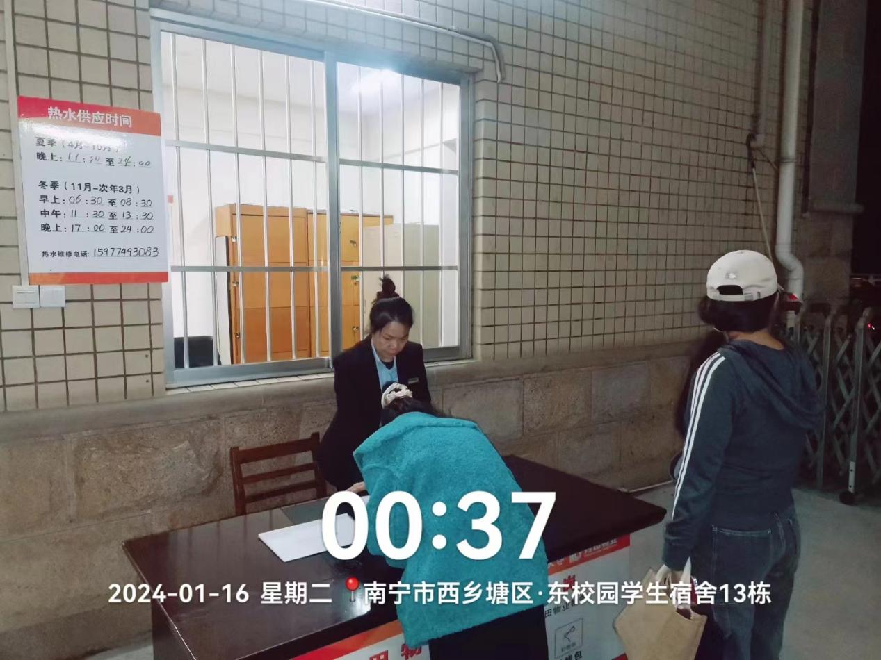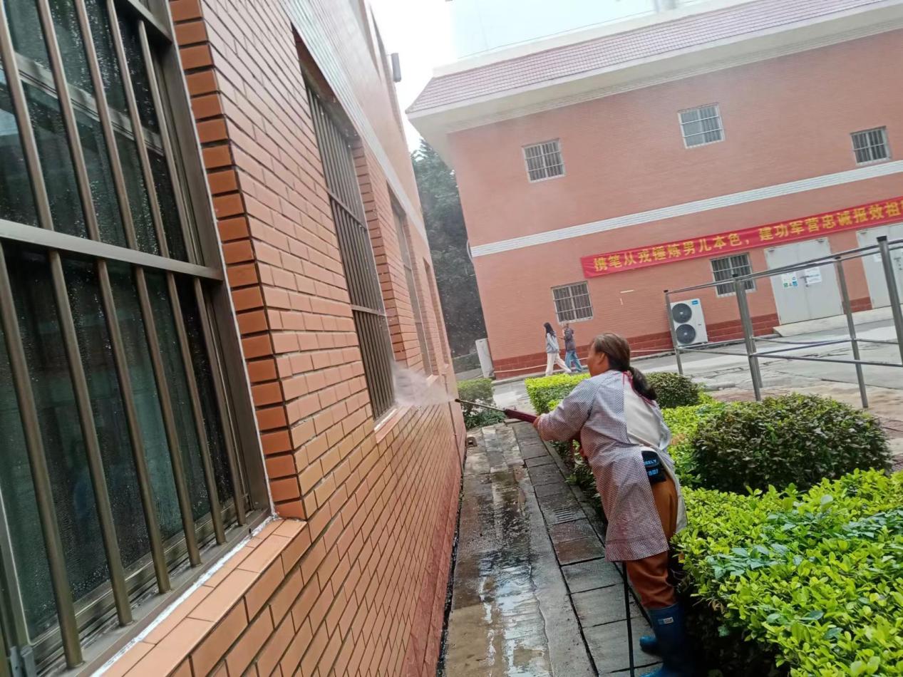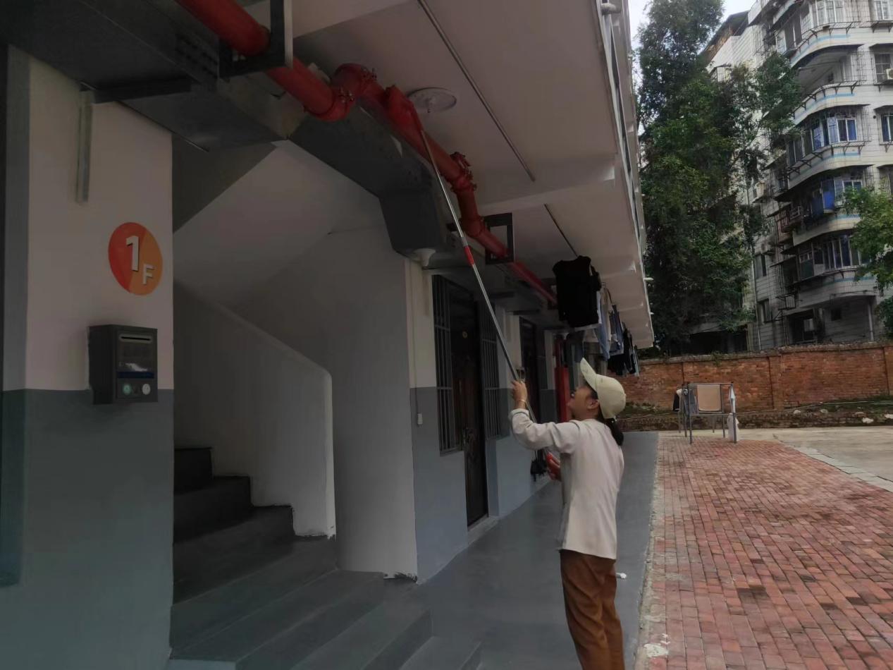 认真做好园区内各种设备设施和33间自习室的保洁维护工作。每日检测园区热水机组温度以及洗衣机的运营情况,定时检查园区消防设备设施情况。擦拭学生公寓园区内472个生活设施(其中公共长椅102张,乒乓球桌152张,晾衣架134个、健身器材84个)。