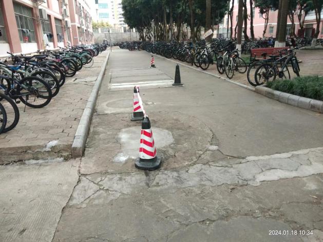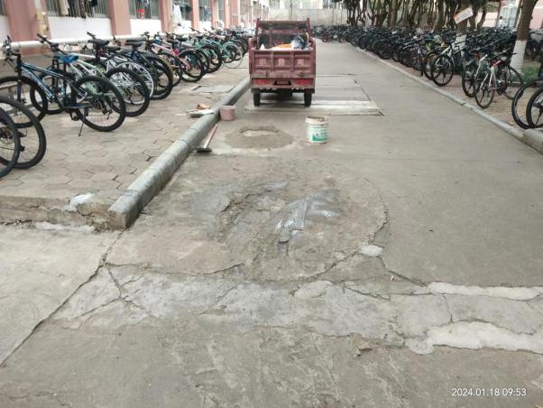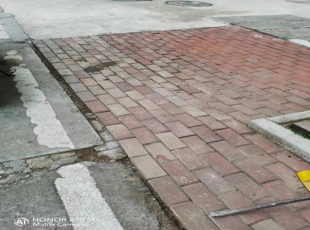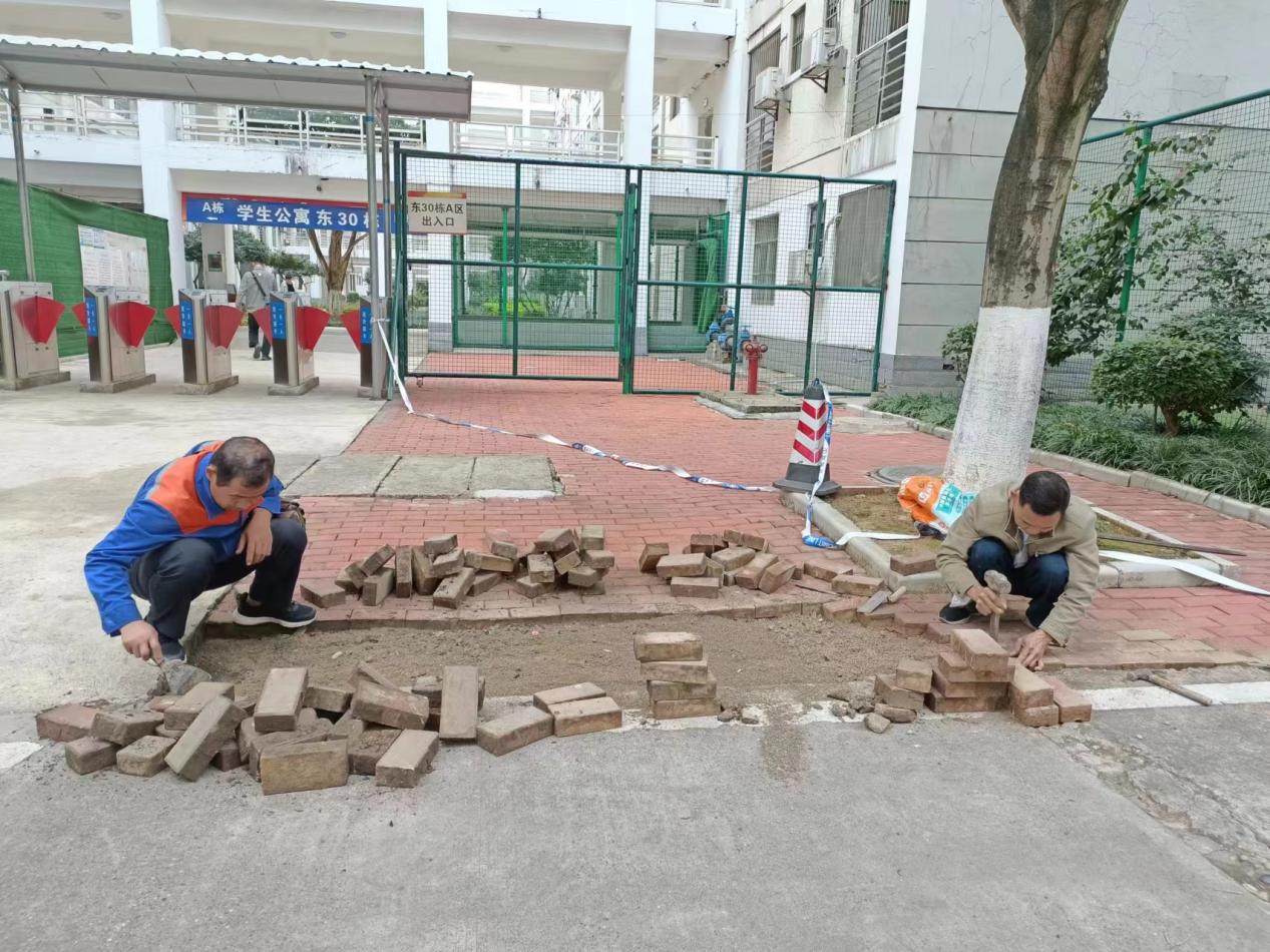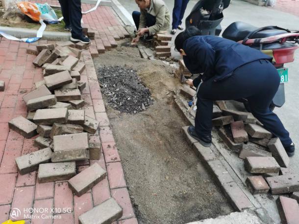 修复东30栋出入口透水砖下陷凹区域