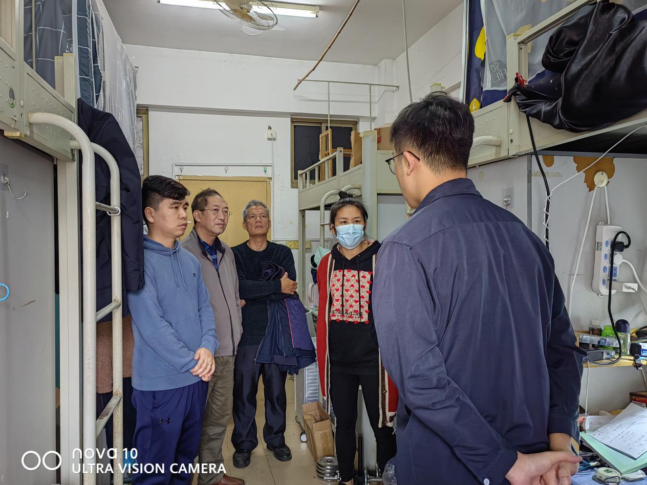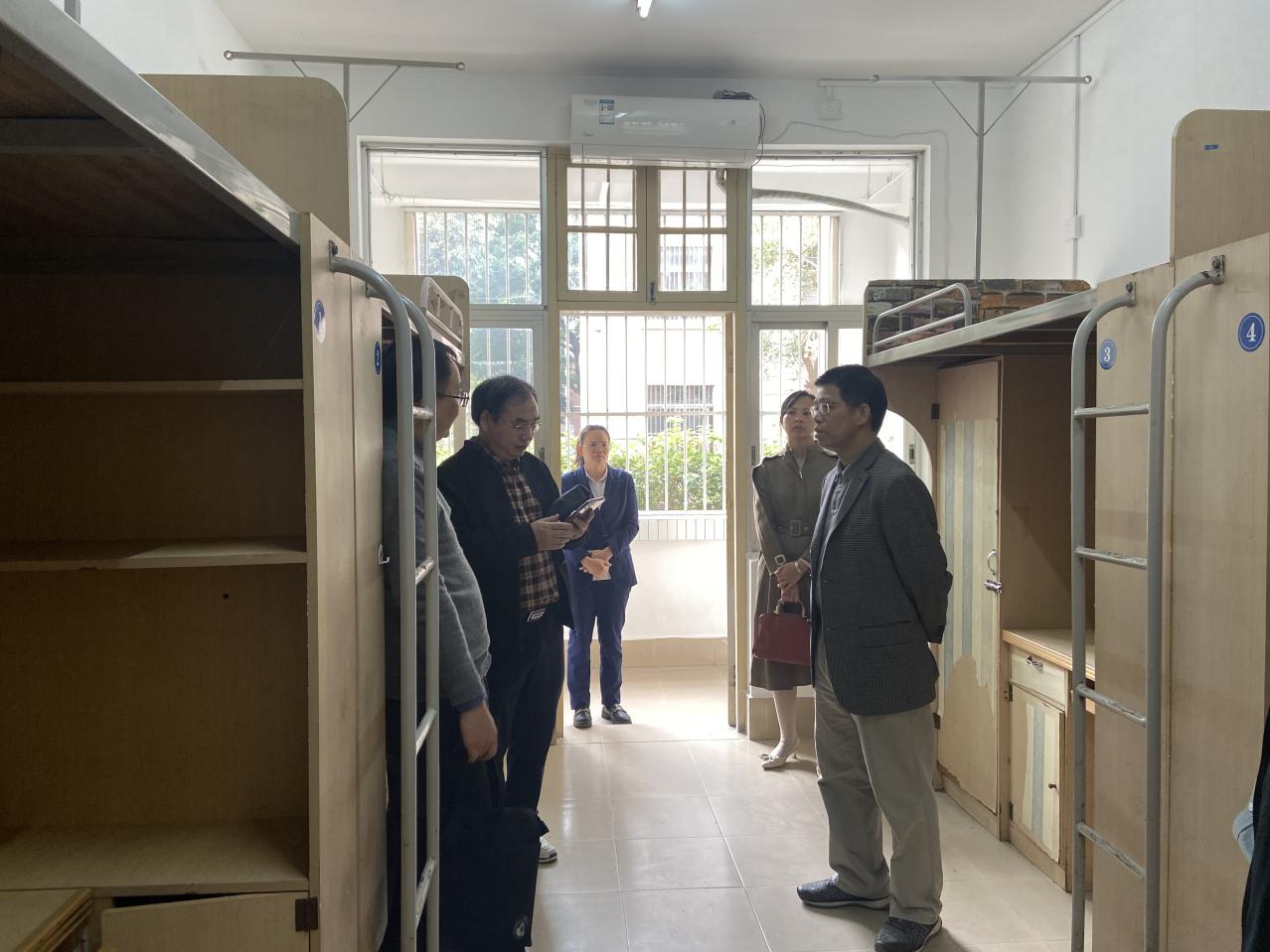 校领导带队调研学生宿舍墙面粉刷情况