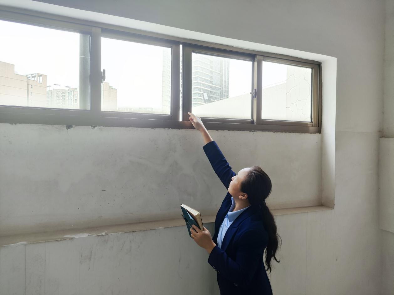 工作人员排查学生公寓外墙安全隐患情况