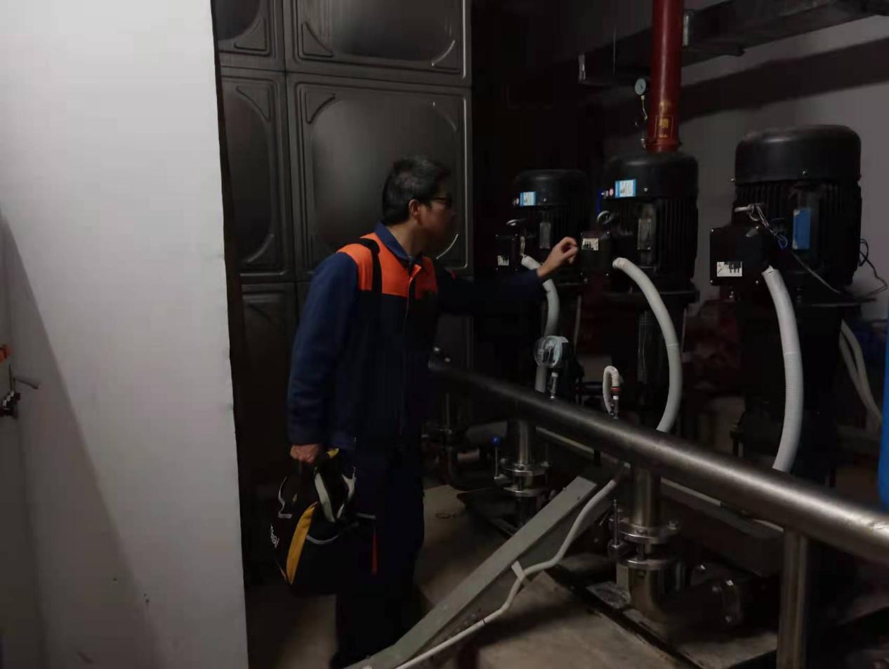 夜间巡查学生公寓西27栋热水机组运行情况