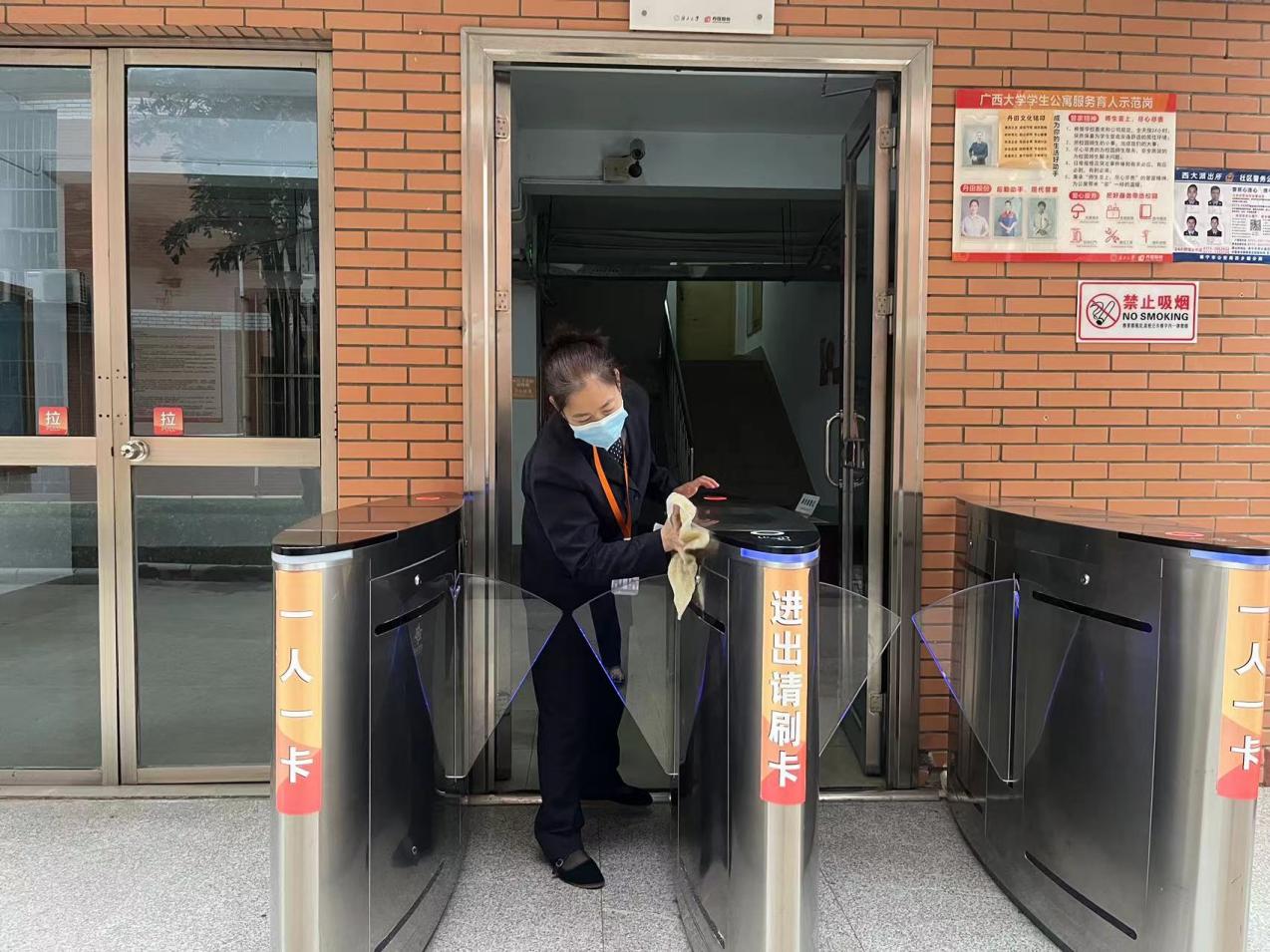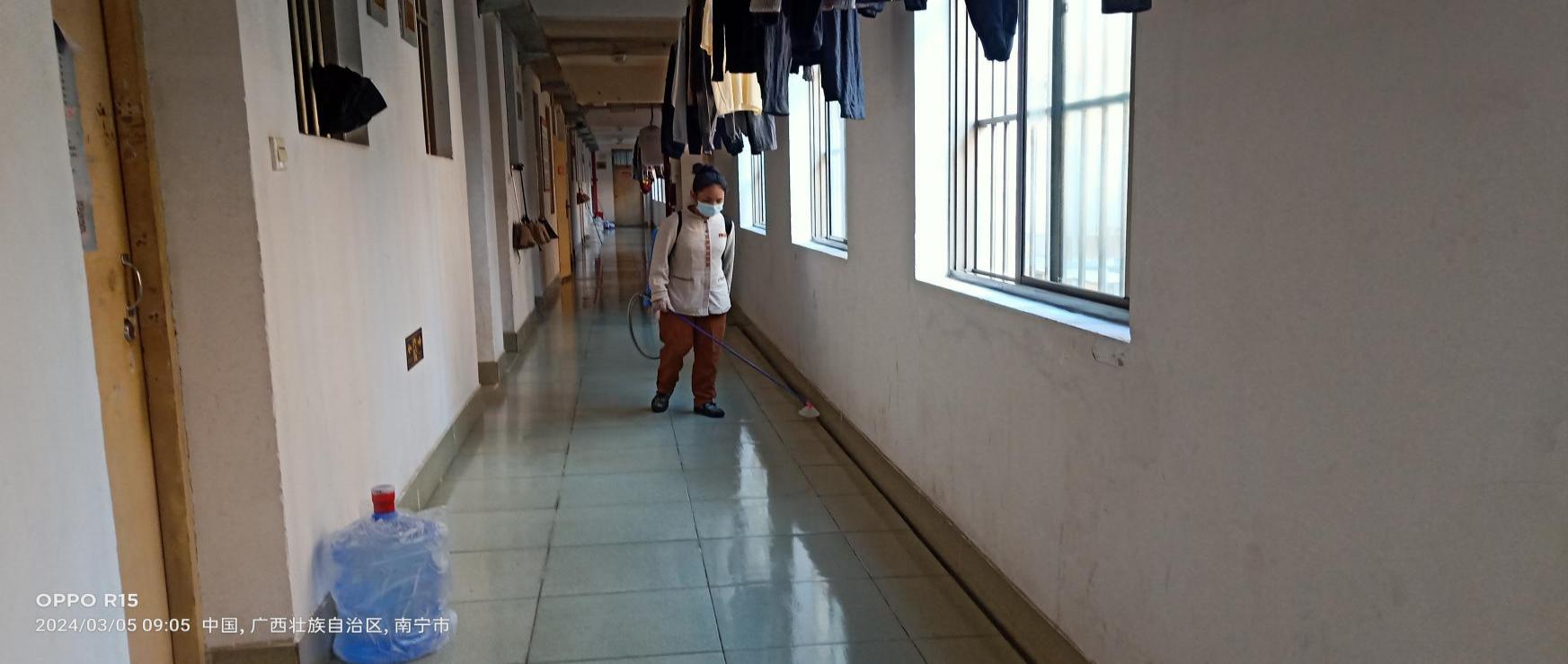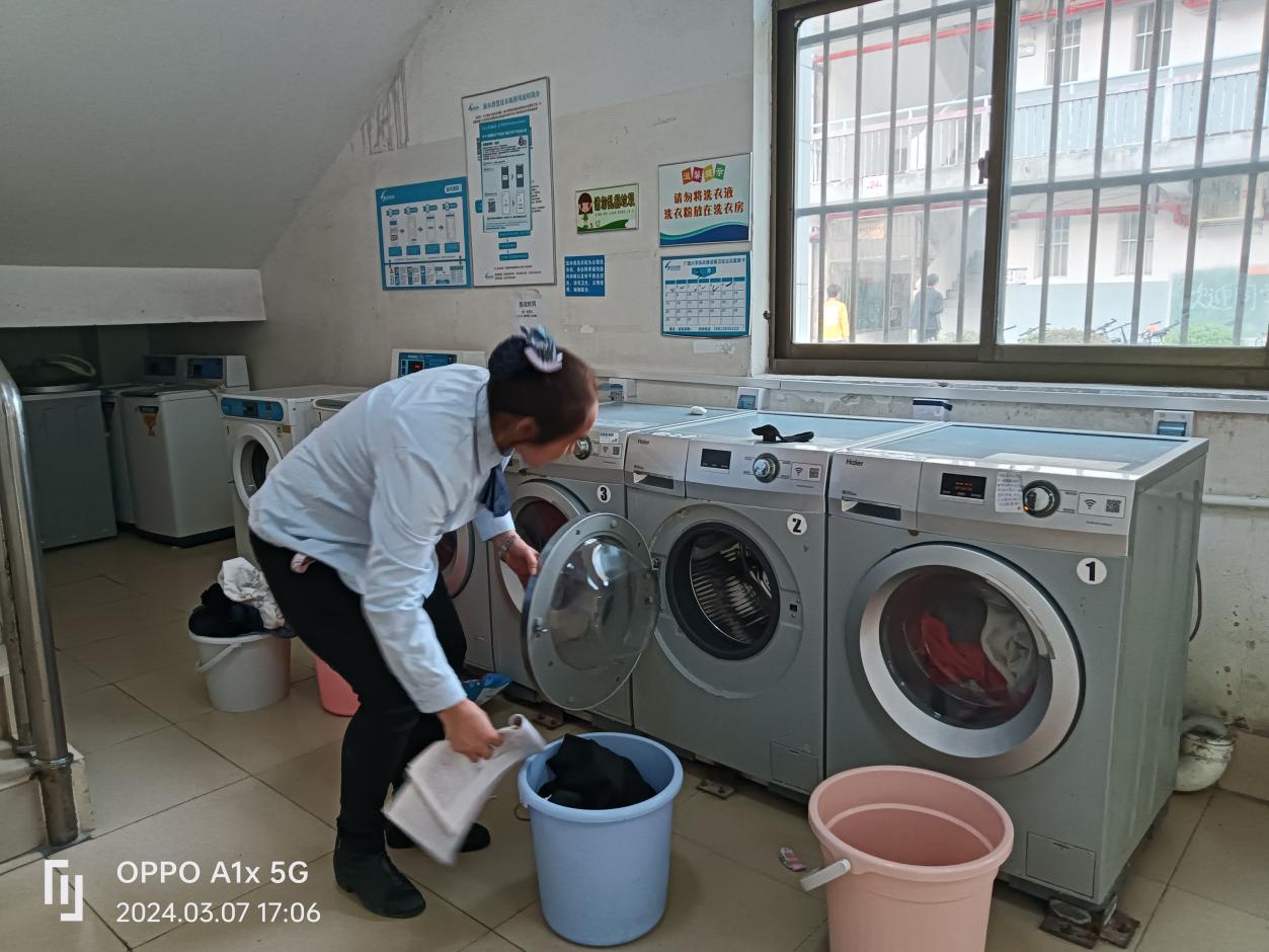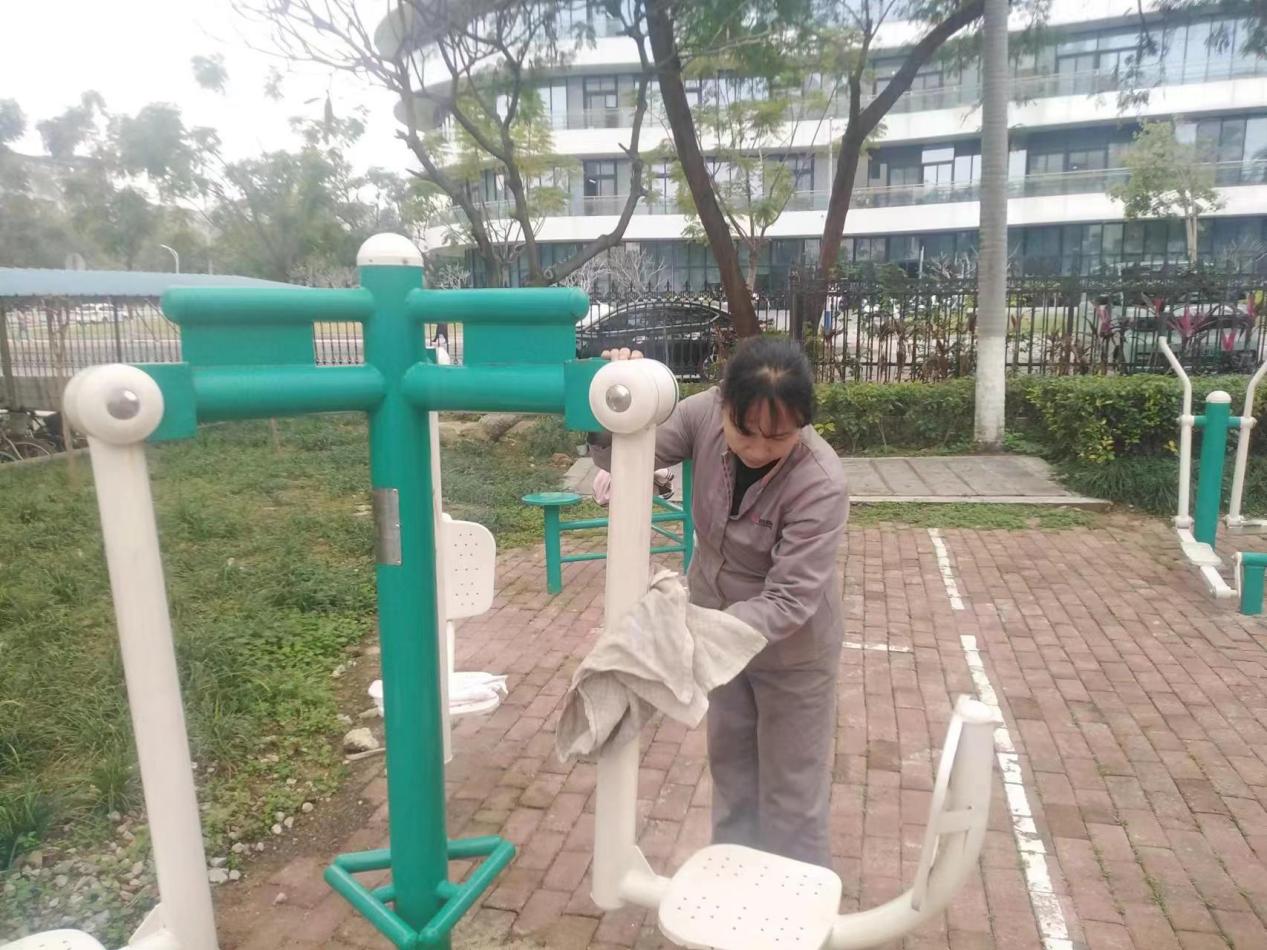 认真做好园区内各种设备设施和33间自习室的保洁维护工作。每日检测园区热水机组温度以及洗衣机的运营情况,定时检查园区消防设备设施情况。擦拭学生公寓园区内472个生活设施(其中公共长椅102张,乒乓球桌152张,晾衣架134个、健身器材84个)。