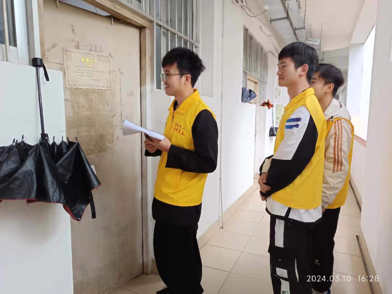一、安全排查:根据2024年春季开学以及两会期间学校安全工作的有关要求,学生公寓加强巡查并对园区内的消防设施、高空坠物、高大树木、用电线路等情况进行逐一排查。