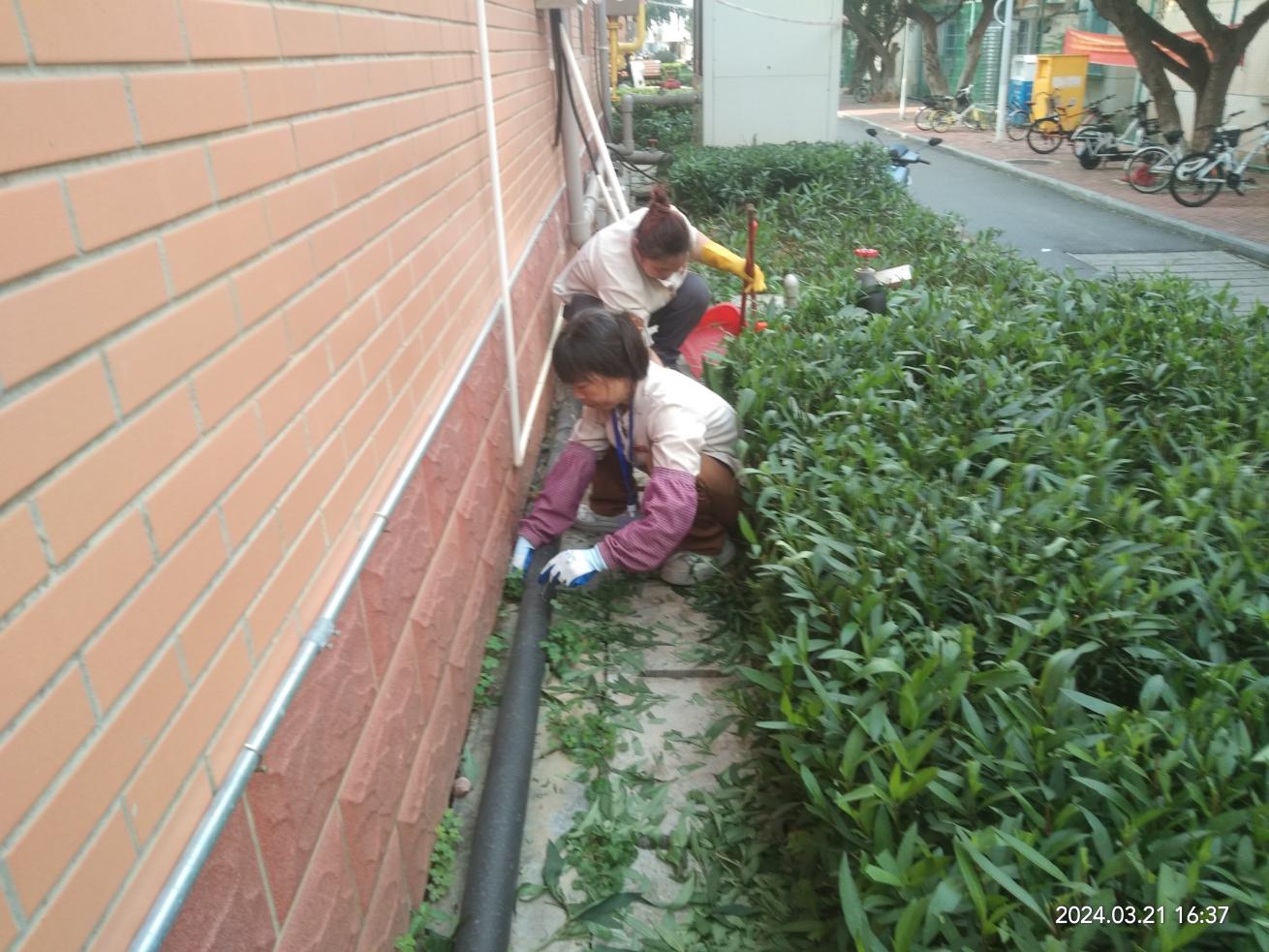 持续做好楼栋日常保洁和公寓园区绿植养护工作。进行日常保洁约19万平方米,清理明沟水沟长度约3270米;本周绿化主要进行各园区绿化杂草打理。
