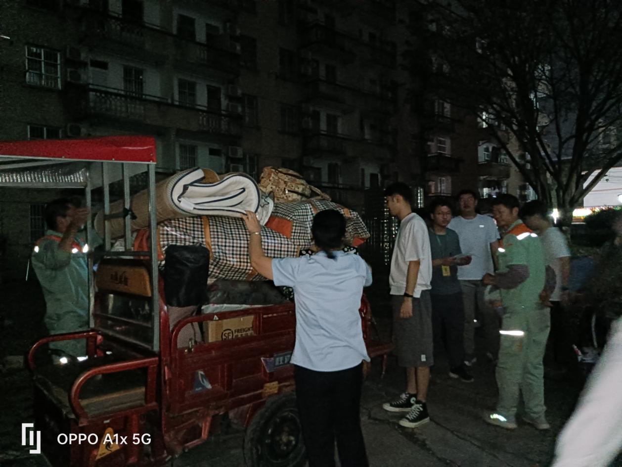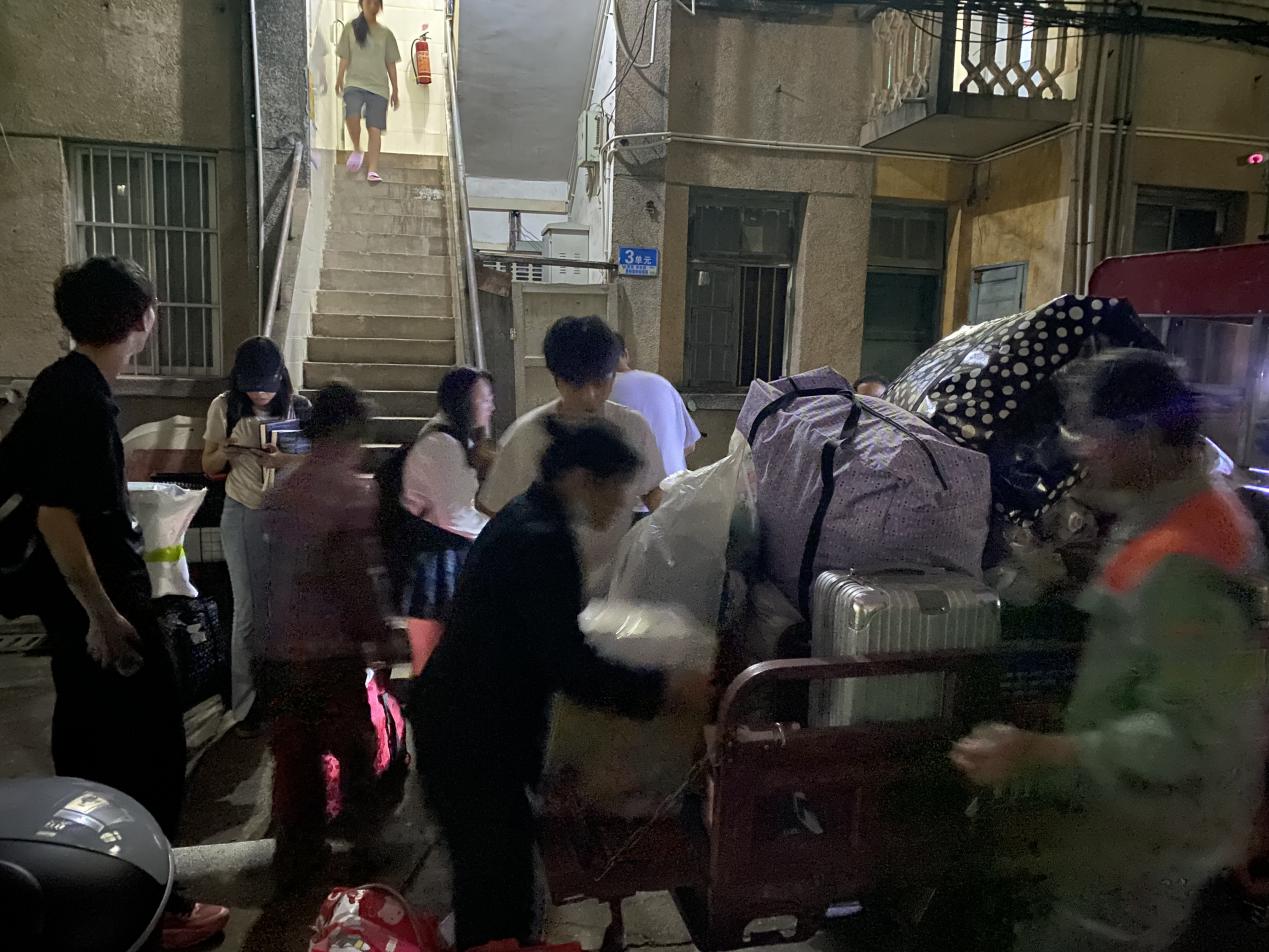 工作人员协助南区1栋学生搬行李物品