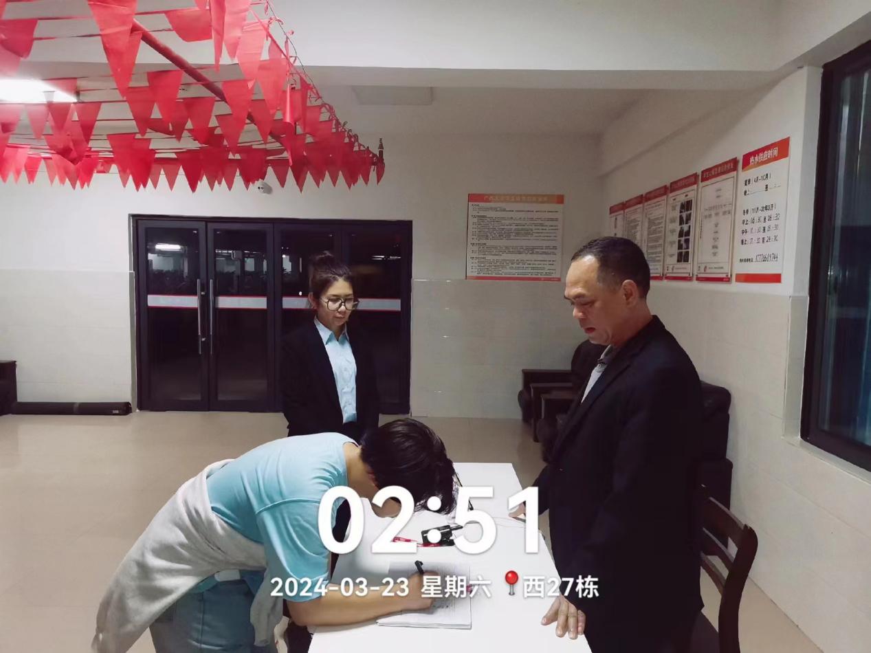 春季第五周学生公寓各项服务工作有序开展,本周到宿舍走访学生224人次,解决学生反映的洗衣机问题,天面漏水问题等共3起;办理宿舍业务5922人次(其中办理外宿21人,调宿学生58人,新入住学生6人,其他业务152人, 晚归登记5685人次)。