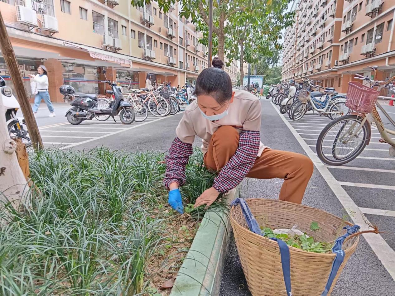 清理西23栋绿化带杂草