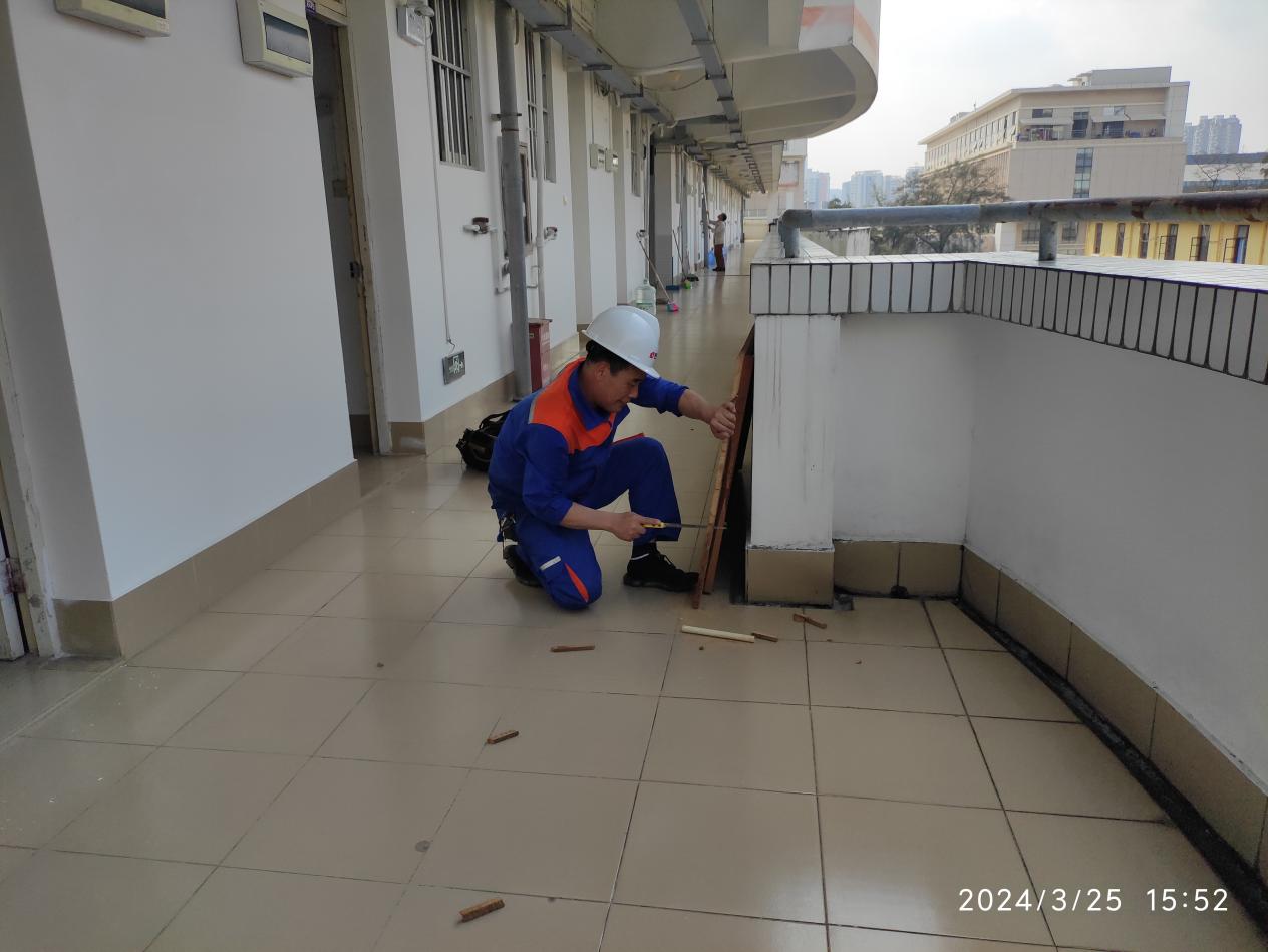 2024年3月23日-29日后勤服务24小时报修中心接电话报修、网上报修、现场报修1525单,其中学生公寓报修985单(已完工962单,完工率97.6%,余23单在维修中),其中电气类384单,木工类165单,给排水类204单,基建类30单,冷热水阀类67单,其他类135单,余下540单由其他岗位负责完成维修;在做好每天日常维修的同时,坚持对学生公寓183间电表房, 2个水泵房每天巡检。