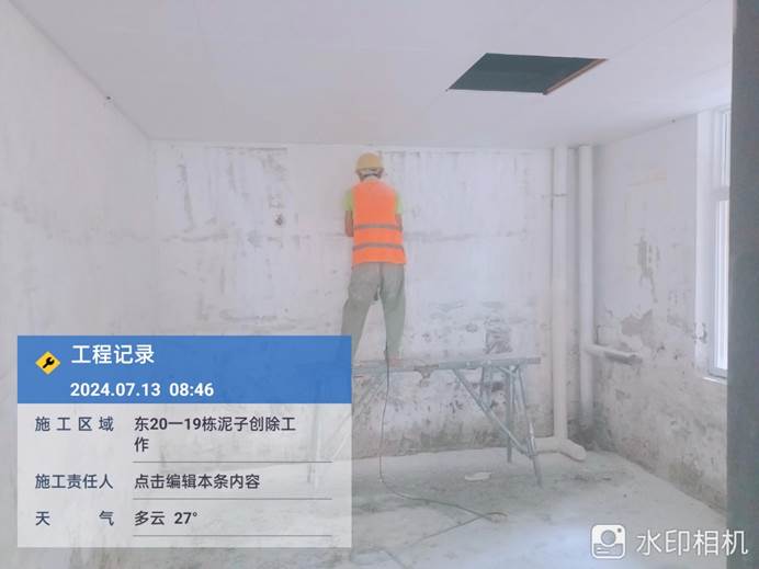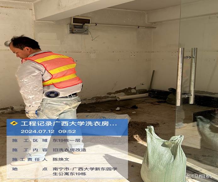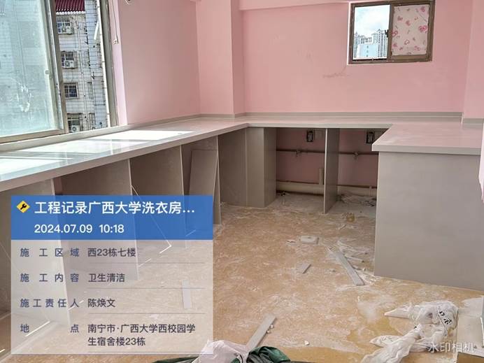 2024年5月24日,西21.22.23洗衣房室内旧腻子铲除,地面平整