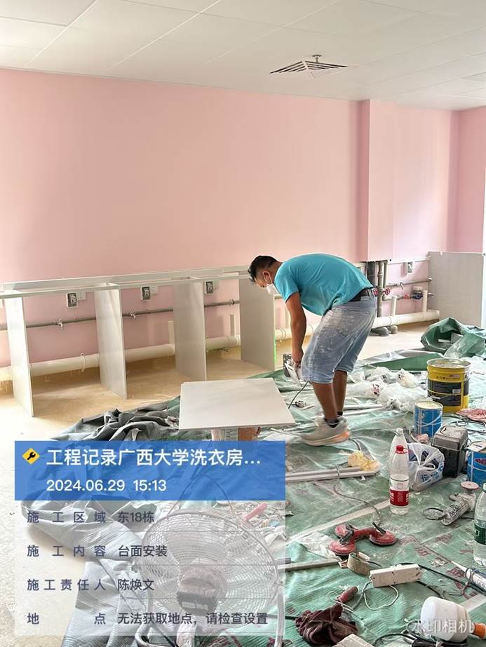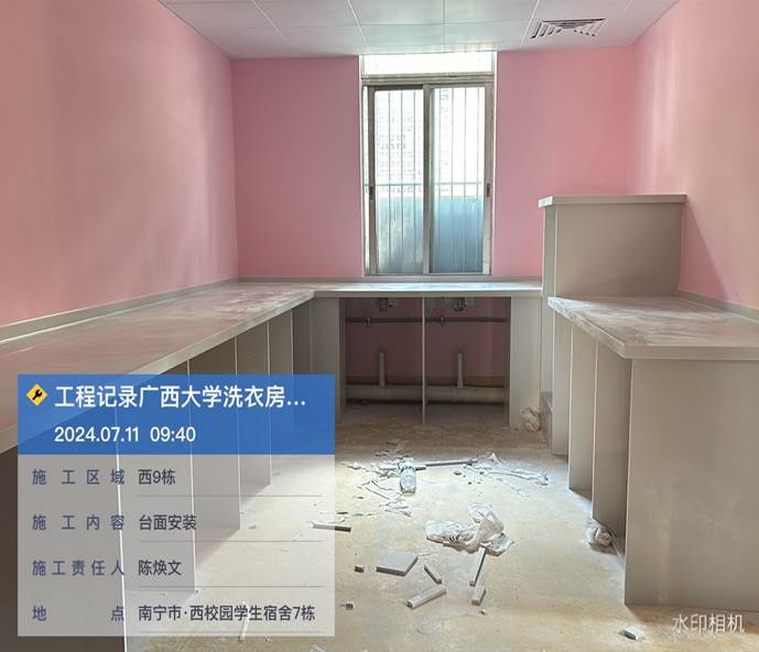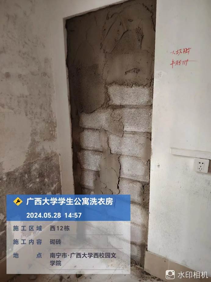 4月8日,共享洗衣样板房墙面施工中