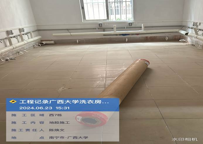 4月2日,共享洗衣样板房地板施工中