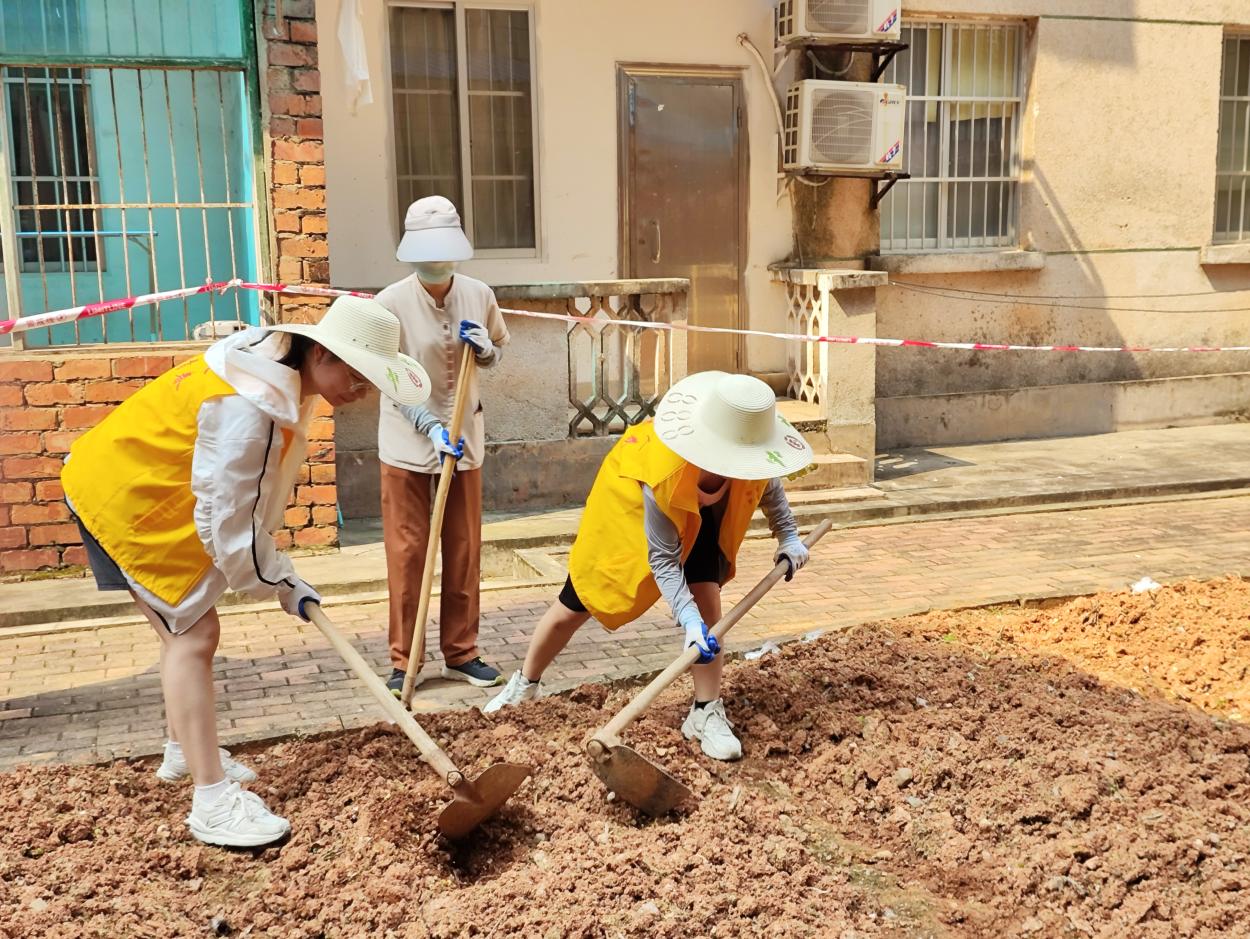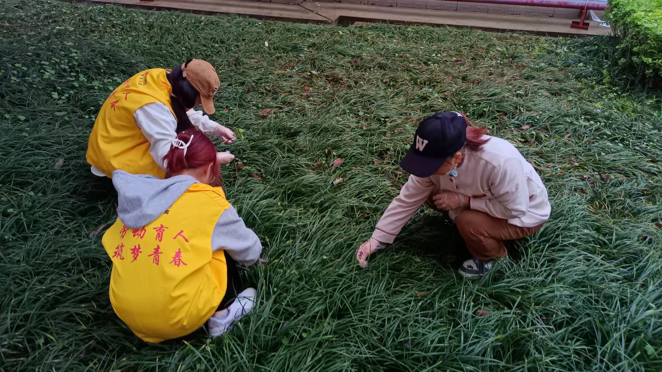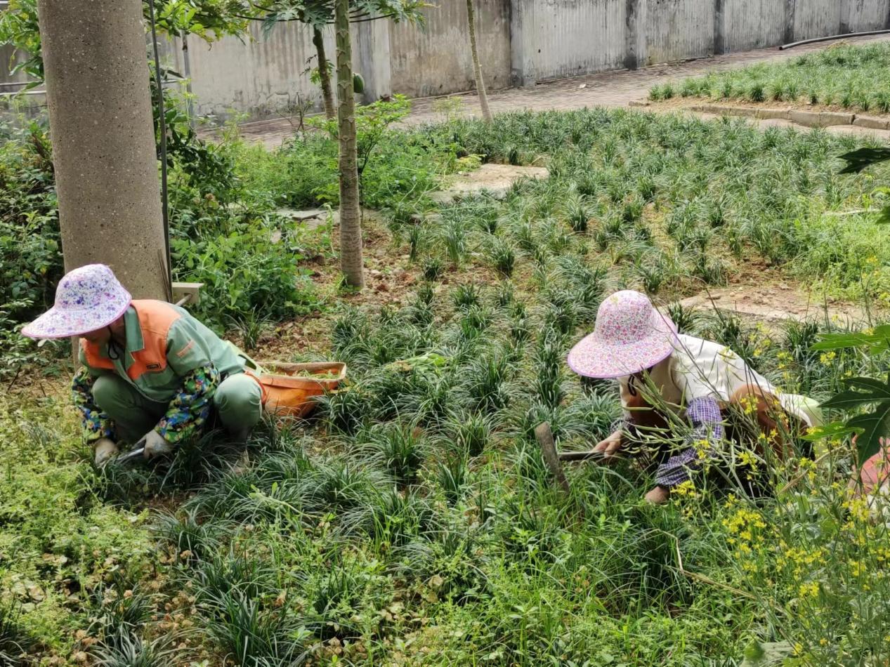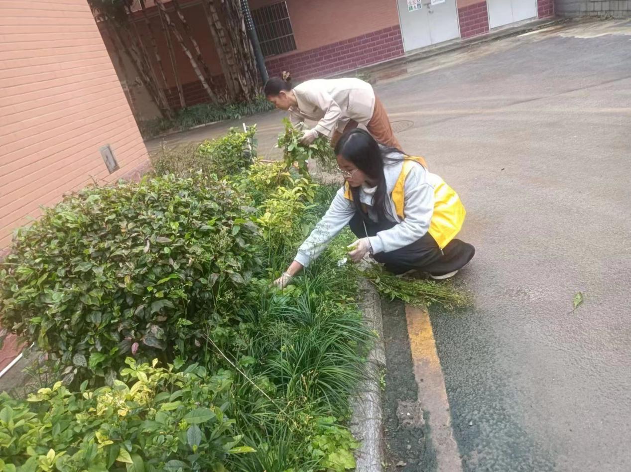 绿化体验岗同学园区绿化带除草