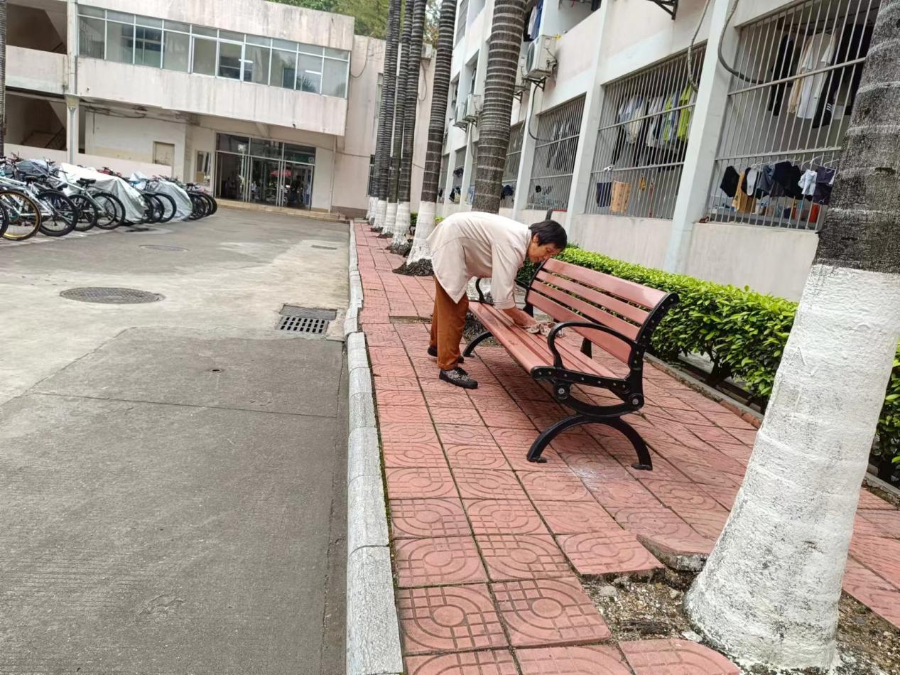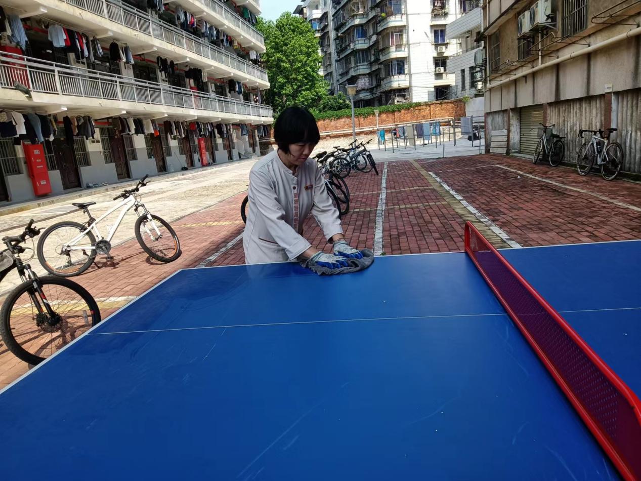 为营造学生公寓园区宜学宜居的环境,认真做好园区内消防设备设施、热水机组、洗涤设备等各种设备设施和33间自习室的保洁维护工作;做好学生公寓园区内472个生活设施(其中公共长椅102张,乒乓球桌152张,晾衣架134个、健身器材84个)的维护工作。