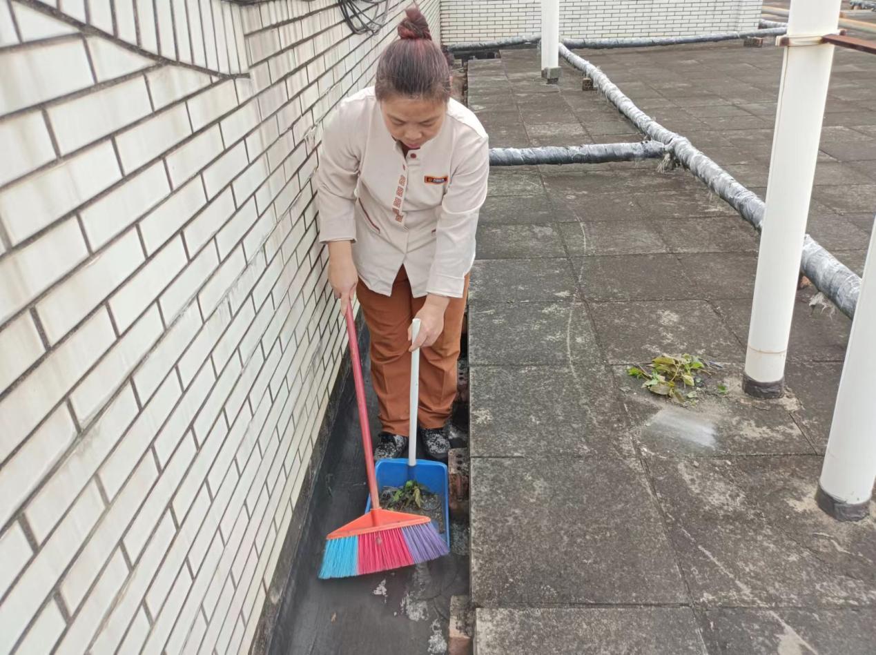 持续做好楼栋日常保洁和公寓园区绿植养护工作。进行日常保洁约19万平方米,清理明沟水沟长度约3270米;本周绿化主要进行一次园区的绿化带消杀以及南区的麦冬补种工作。