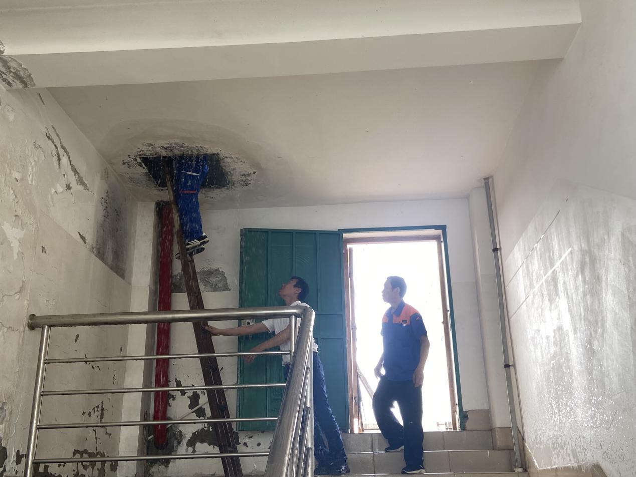维修楼顶消防储水箱漏水
