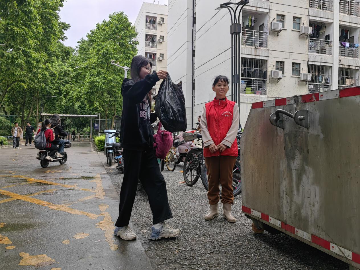 本周垃圾分类督导员共处理垃圾约51.381吨,其中厨余垃圾约24.92吨、其他垃圾约26.46吨、有害垃圾约 0.001吨;垃圾分类督导员走访学生宿舍并发放垃圾分类宣传单236多张,向247多位同学宣传垃圾分类知识。