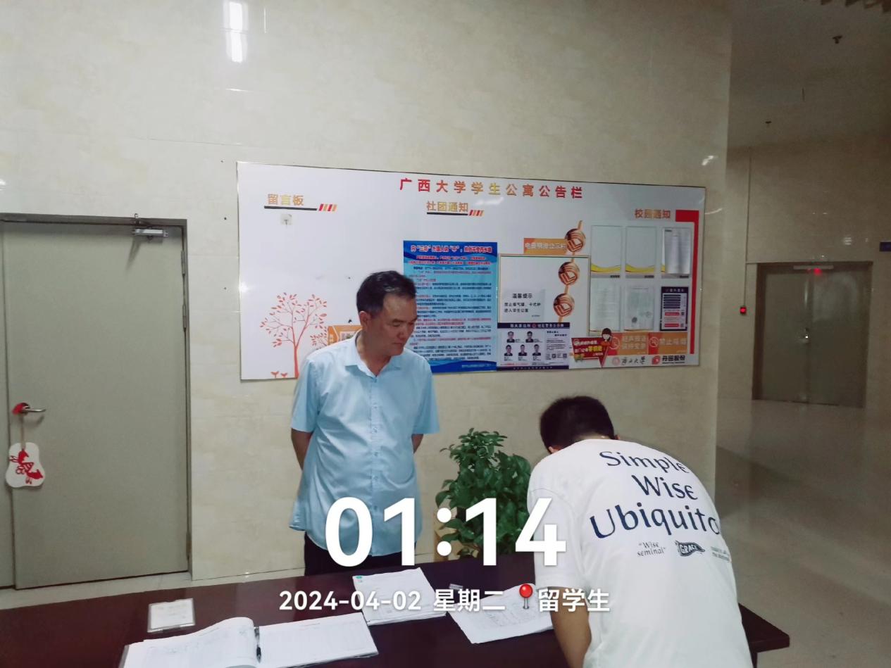 春季第六周学生公寓各项服务工作有序开展,本周到宿舍走访学生168人次,帮助学生解决洗衣机、天面漏水等问题共3起;办理宿舍业务5322人次(其中办理外宿18人,调宿学生6人,新入住学生5人,其他业务122人, 晚归登记5171人次)。