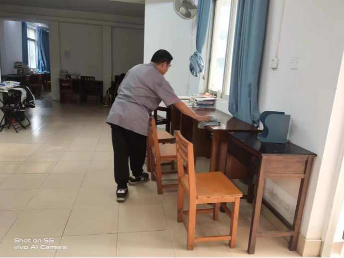 园区自习室进行保洁
