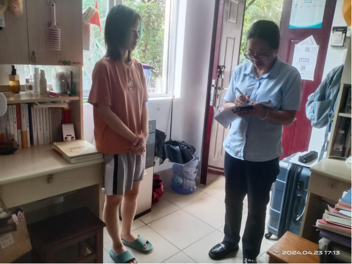 春季第九周学生公寓各项服务工作有序开展,本周到宿舍走访学生102人次,帮助学生解决洗衣机、天面漏水等问题共3起;办理宿舍业务5148人次(其中办理外宿5人,调宿学生3人,新入住学生1人,其他业务106人, 晚归登记5033人次)。