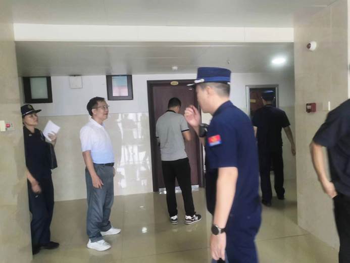 处领导陪同消防支部检查留学生大楼消防工作