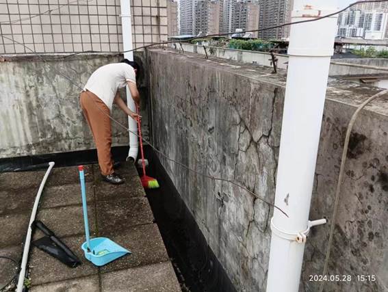 学生公寓及时开展暴雨前的安全排查工作,针对园区的情况准备防疫物资,排查配电房,排水设施等重点区域,对发现的隐患和问题及时处理及汇报。