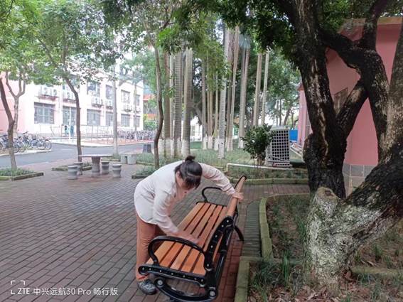 为营造学生公寓园区宜学宜居的环境,认真做好园区内消防设备设施、热水机组、洗涤设备等各种设备设施和33间自习室的保洁维护工作;做好学生公寓园区内472个生活设施(其中公共长椅102张,乒乓球桌152张,晾衣架134个、健身器材84个)的维护工作。