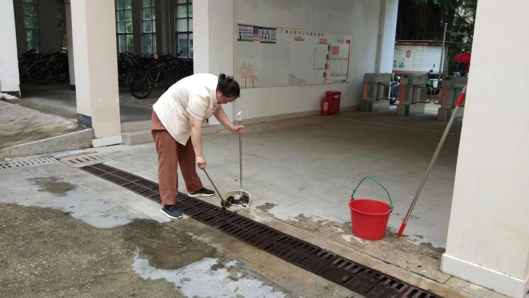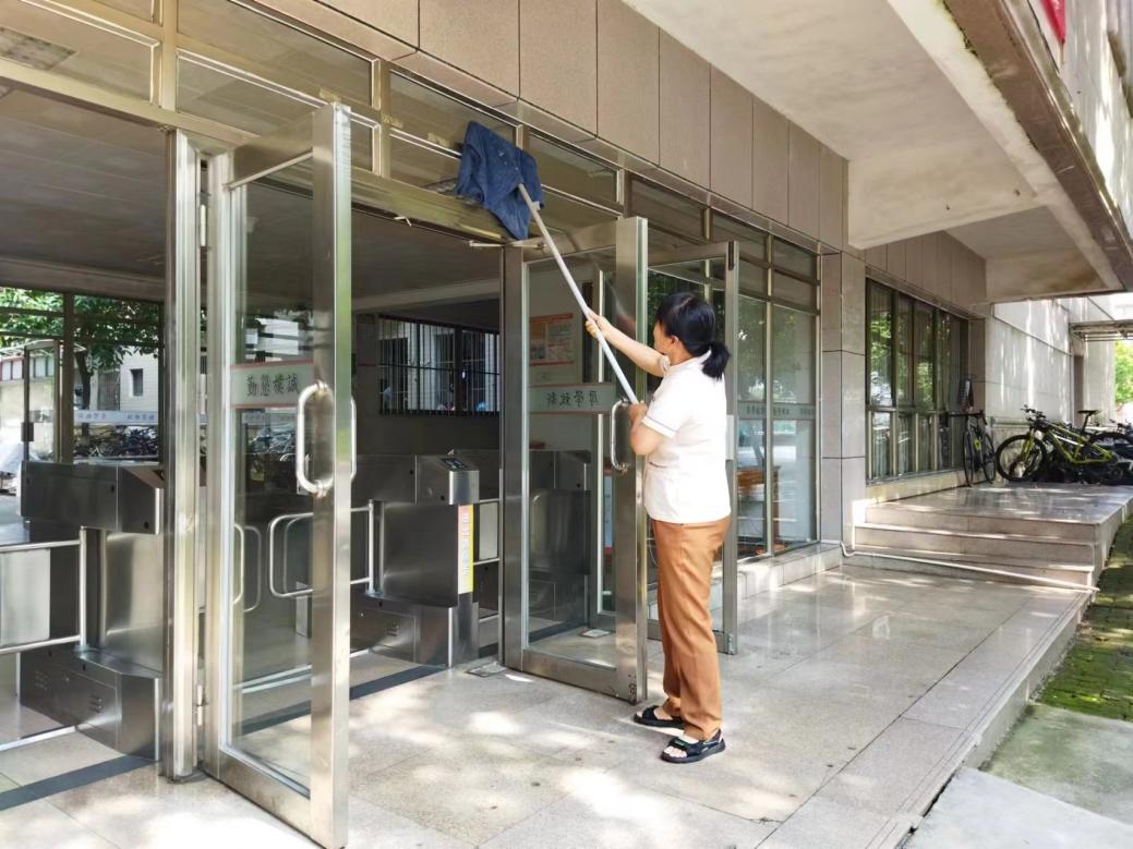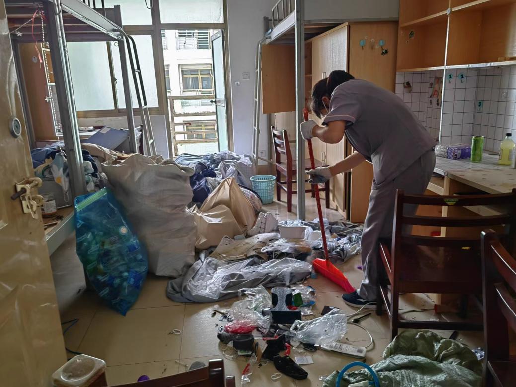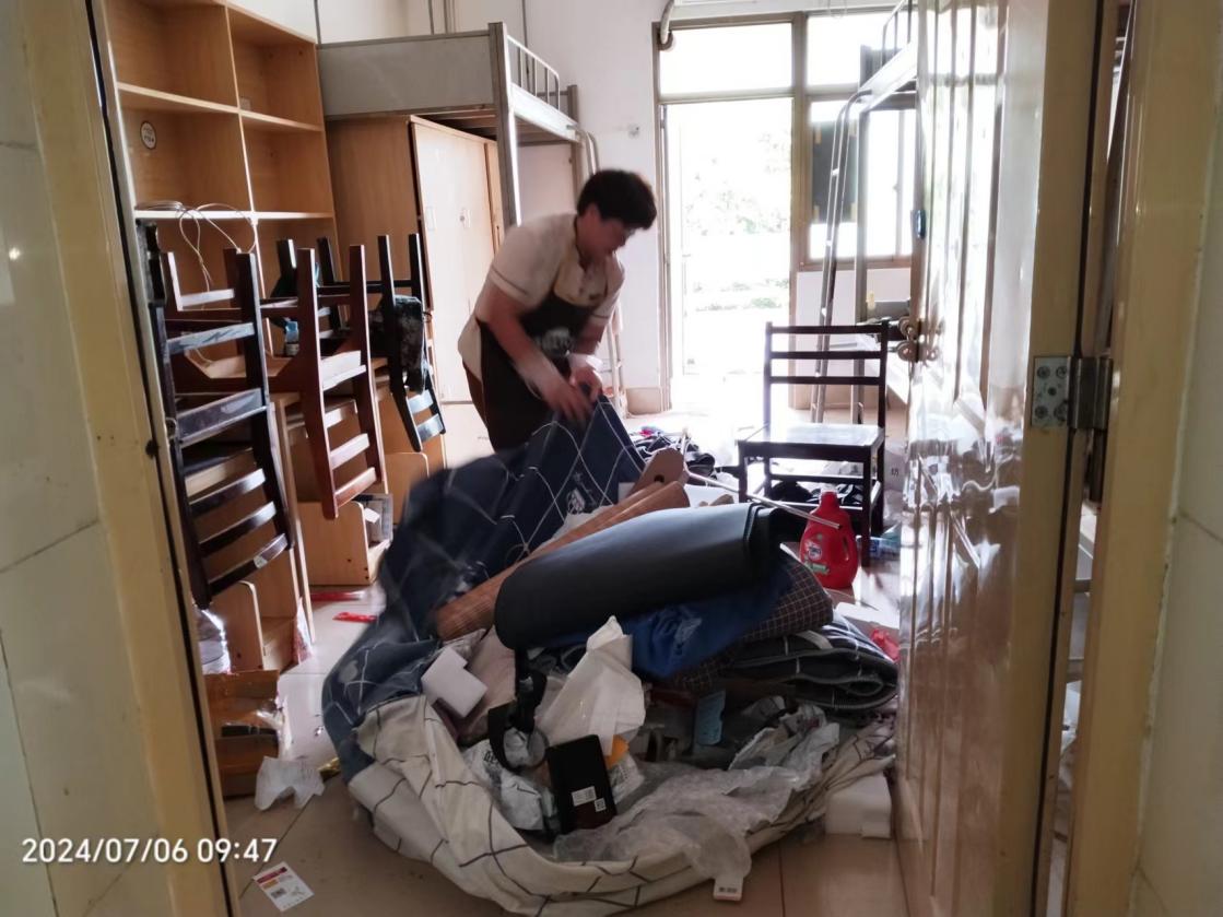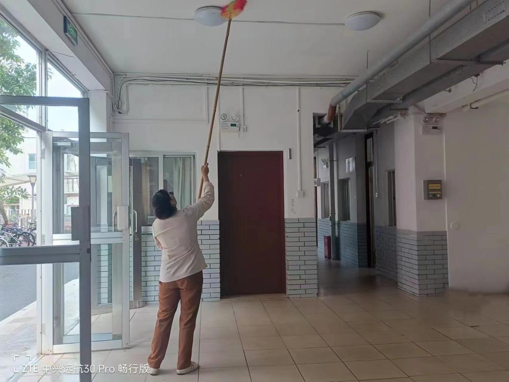本周持续做好公寓园区绿植养护和园区日常保洁工作。本周保洁工作重点为毕业生的空房保洁工作,6月29日至7月5日,完成毕业生空房初步保洁345间,清洗毕业生房风扇1863台;本周绿化重点为绿化修剪工作。
