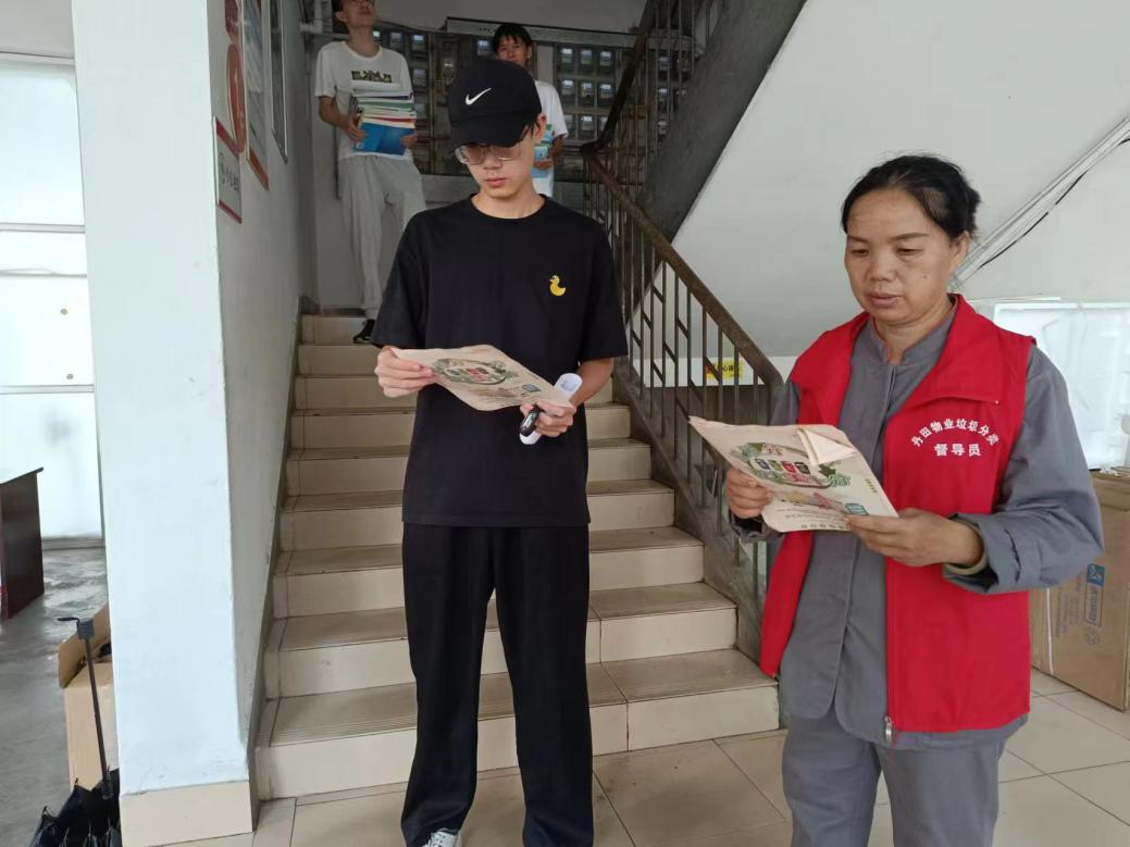 本周垃圾分类督导员共处理垃圾约97.601吨,其中厨余垃圾约29.28吨、其他垃圾约68.32吨、有害垃圾约 0.001吨;垃圾分类督导员走访学生宿舍并发放垃圾分类宣传单236多张,向254多位同学宣传垃圾分类知识。