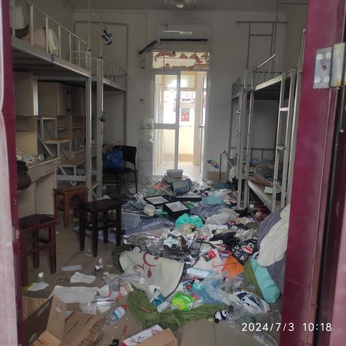 春季第十九周学生公寓各项服务工作有序开展,目前已办理了9964名毕业生的退宿工作及毕业审核工作,完成2024年继续在本校升学攻读研究生的应届毕业生暑期临时借住学生宿舍安排1027人以及2024年零散宿舍调整121人。本周到宿舍走访学生176人次;办理宿舍业务5565人次(其中办理外宿26人,调宿学生8人,新入住学生8人,其他业务212人, 晚归登记5311人次)。