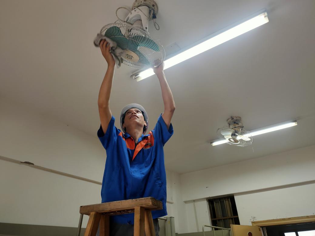 为营造学生公寓园区宜学宜居的环境,认真做好园区内消防设备设施、热水机组、洗涤设备等各种设备设施和33间自习室的保洁维护工作;做好学生公寓园区内472个生活设施(其中公共长椅102张,乒乓球桌152张,晾衣架134个、健身器材84个)的维护工作。