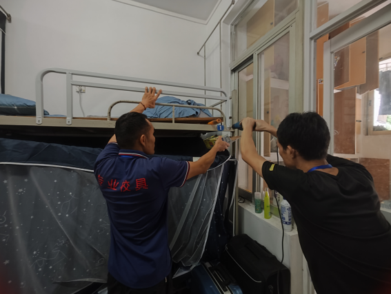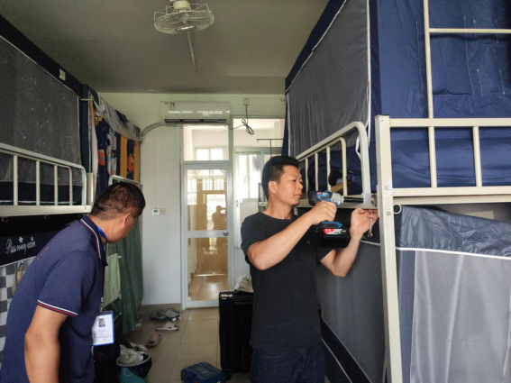 2. 为了进一步改善学生公寓宿舍生活设施,根据工作安排,在部分学生公寓开展架床护栏加高施工作业,在9月15-20日已完成东1A栋、东1B栋、东1栋、东2A栋、东2B栋、东7栋、东13栋共7栋学生公寓497间宿舍1988个床位的架床护栏加高工作。