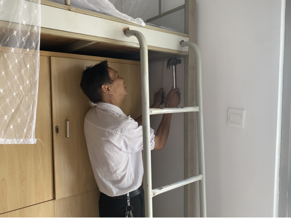 为营造学生公寓园区宜学宜居的环境,认真做好园区内消防设备设施、热水机组、洗涤设备等各种设备设施和33间自习室的保洁维护工作;做好学生公寓园区内472个生活设施(其中公共长椅102张,乒乓球桌152张,晾衣架134个、健身器材84个)的维护工作。