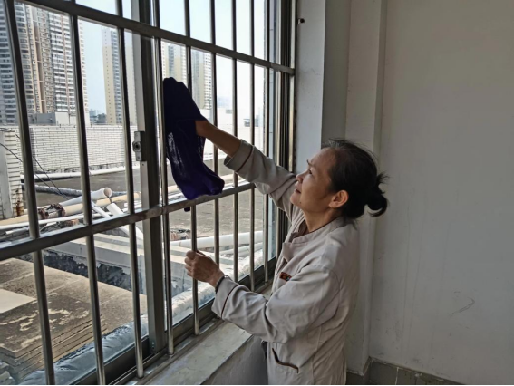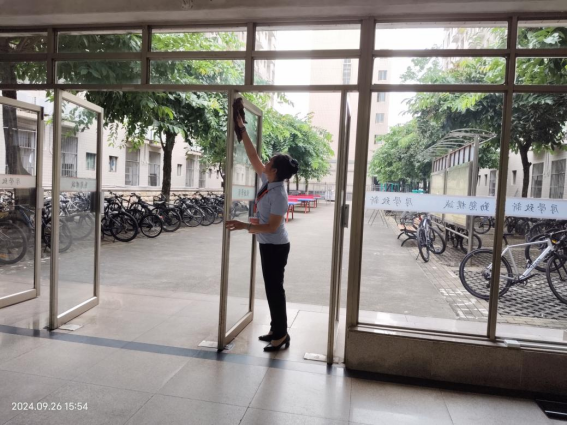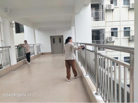 9月25日,巡查学生公寓逃生窗安装情况